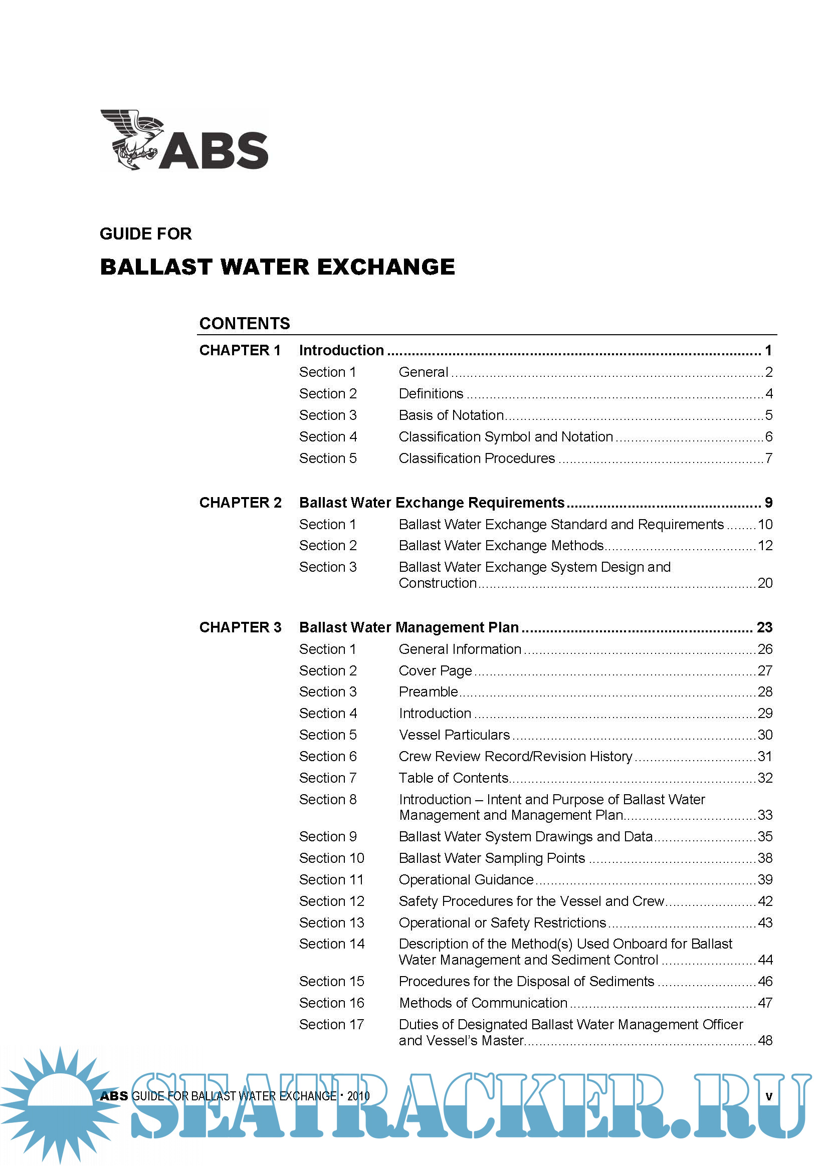 Year: 2018 Language: english Author: ABS Genre: Guide Format: PDF Quality: eBook Pages count: 84 Description: This Guide for Ballast Water Exchange is provided for the use of designers, builders, owners, and operators of vessels classed with ABS and specifies the requirements for obtaining the optional classification notation Ballast Water Exchange (BWE). The BWE notation identifies a level of compliance with the applicable regulations contained in the IMO “International Convention for the Control and Management of Ships’ Ballast Water and Sediments, 2004”, as well as those IMO Guidelines referenced in the Convention addressing ballast water exchange. While the Convention has not yet entered into force, many port States, such as Brazil, Canada and the United States have established national regulations mandating the exchange of ballast water, together with evidence to support that the exchange has taken place (ballast water records). This Guide is to be used in conjunction with other Rules published by ABS and IMO guidelines. Additional info: Updates May 2018 consolidation includes: •February 2016 version plus Notice No. 2 February 2016 consolidation includes: •October 2010 version plus Corrigenda/Editorials October 2010 consolidation includes: •July 2010 version plus Notice No. 1