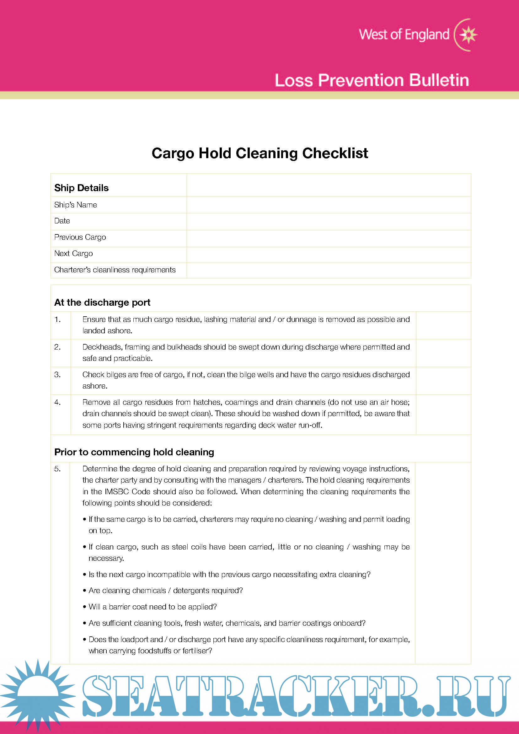 Loss Prevention Bulletin, Cargo Hold Cleaning