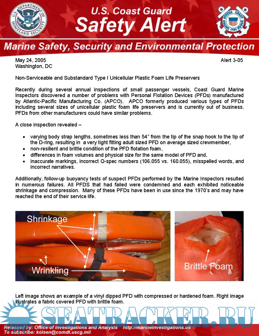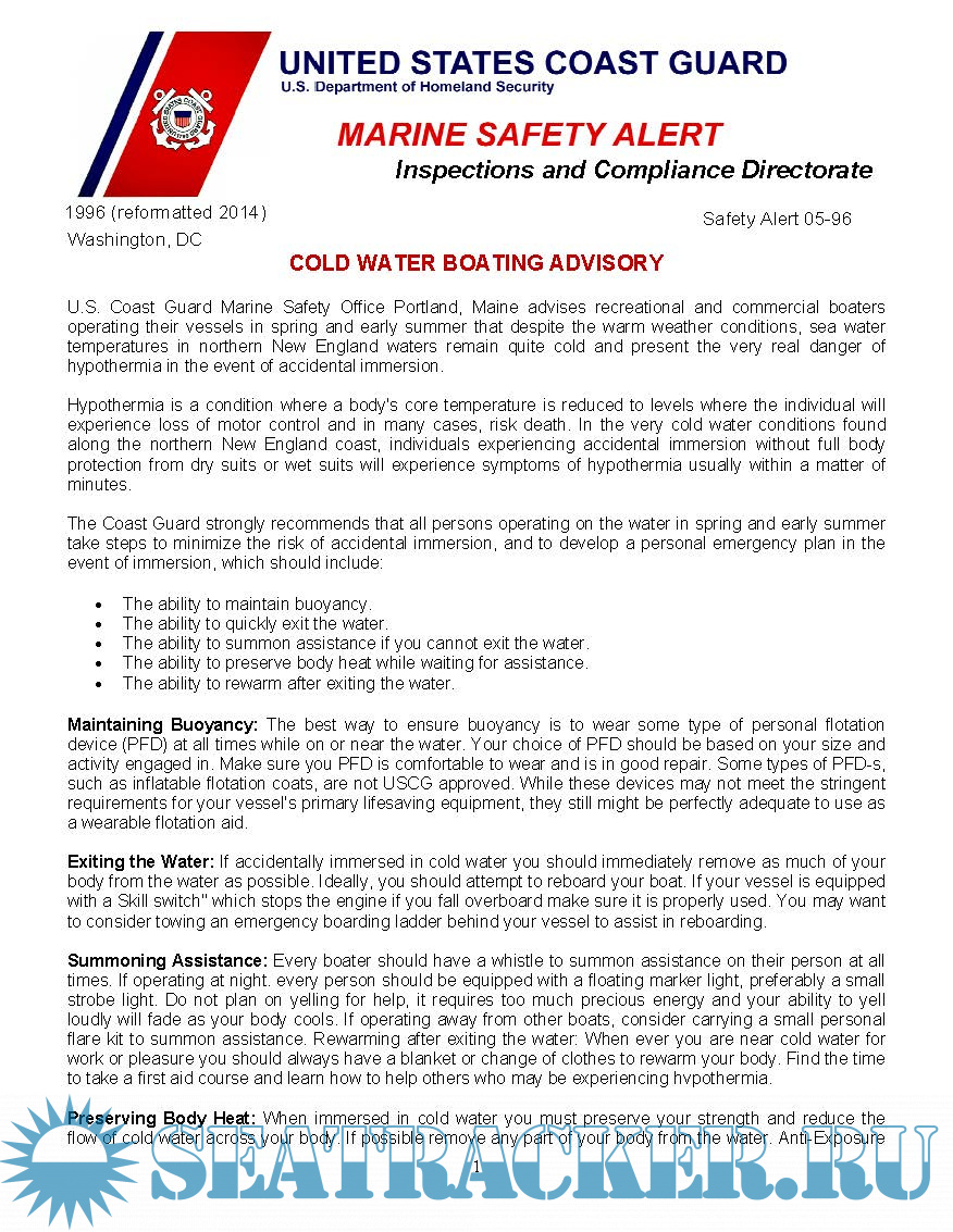 U.S. Coast Guard Prevention - Safety Alerts 1996 -2014