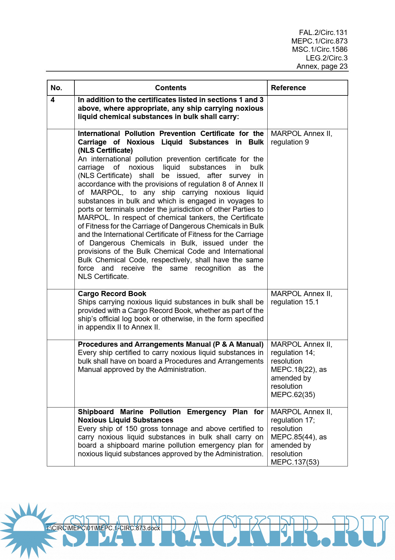 for ships carrying noxious liquid chemical substances in bulk…………………………………………................................Page 25