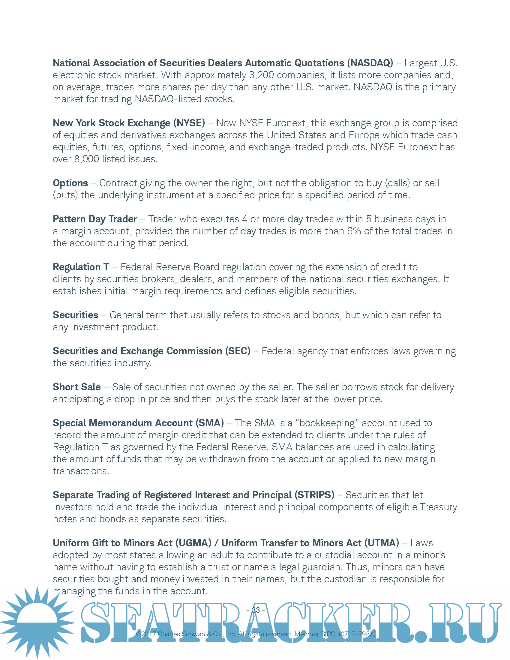 Year: 2017 Language: english Author: Charles Schwab & Co Genre: Guide Format: PDF Quality: eBook Pages count: 34 Description: Margin is an extension of credit from a brokerage company using your own securities as collateral. Funds borrowed on margin may be used for any purpose, including the purchase of securities. Interest is charged on the borrowed funds for the period of time that the loan is outstanding. The use of margin is regulated by financial industry regulatory organizations, certain securities exchanges, and the broker-dealer holding the account.