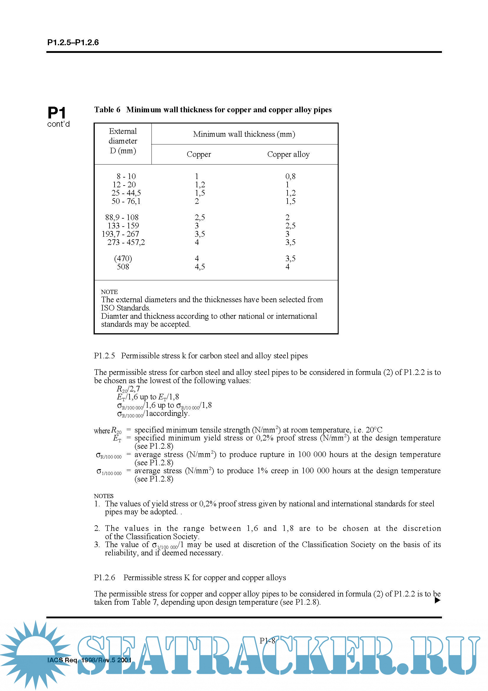 Requirements concerning pipes and pressure vessels