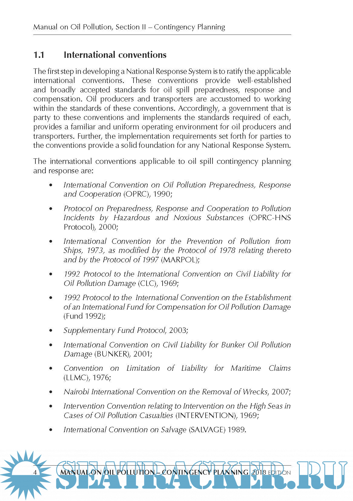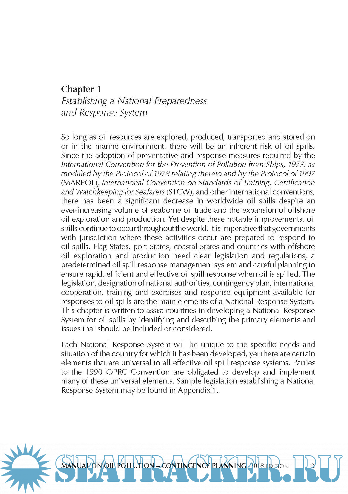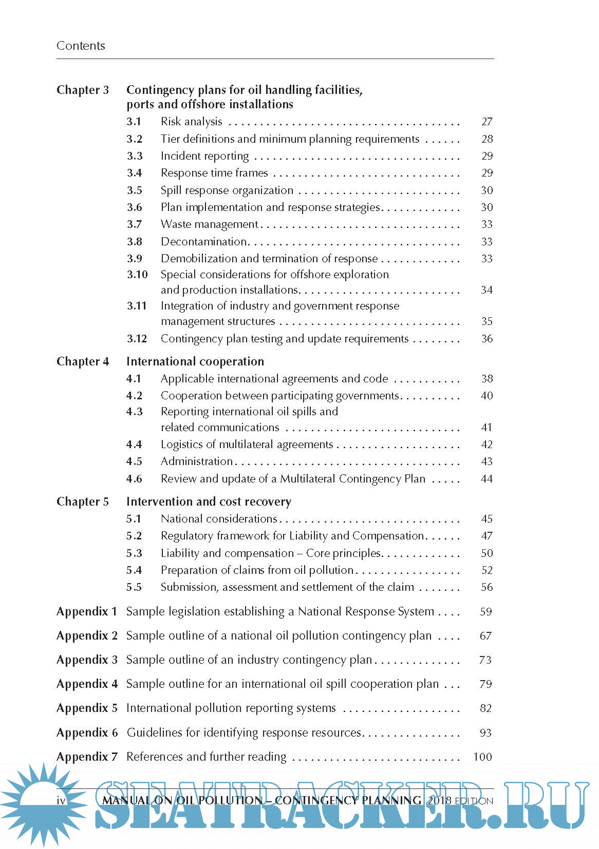 Year: 2018 Language: english Author: IMO Genre: Manual Publisher: CPI Colour Edition: Fourth ISBN: 978-92-801-1666-3 Format: PDF Quality: eBook Pages count: 116 Description: This publication aims to assist governments in establishing a national oil spill response system and, in developing or revising their national oil spill contingency plans. The manual also includes information related to contingency planning for offshore installations, sea ports and oil handling facilities.