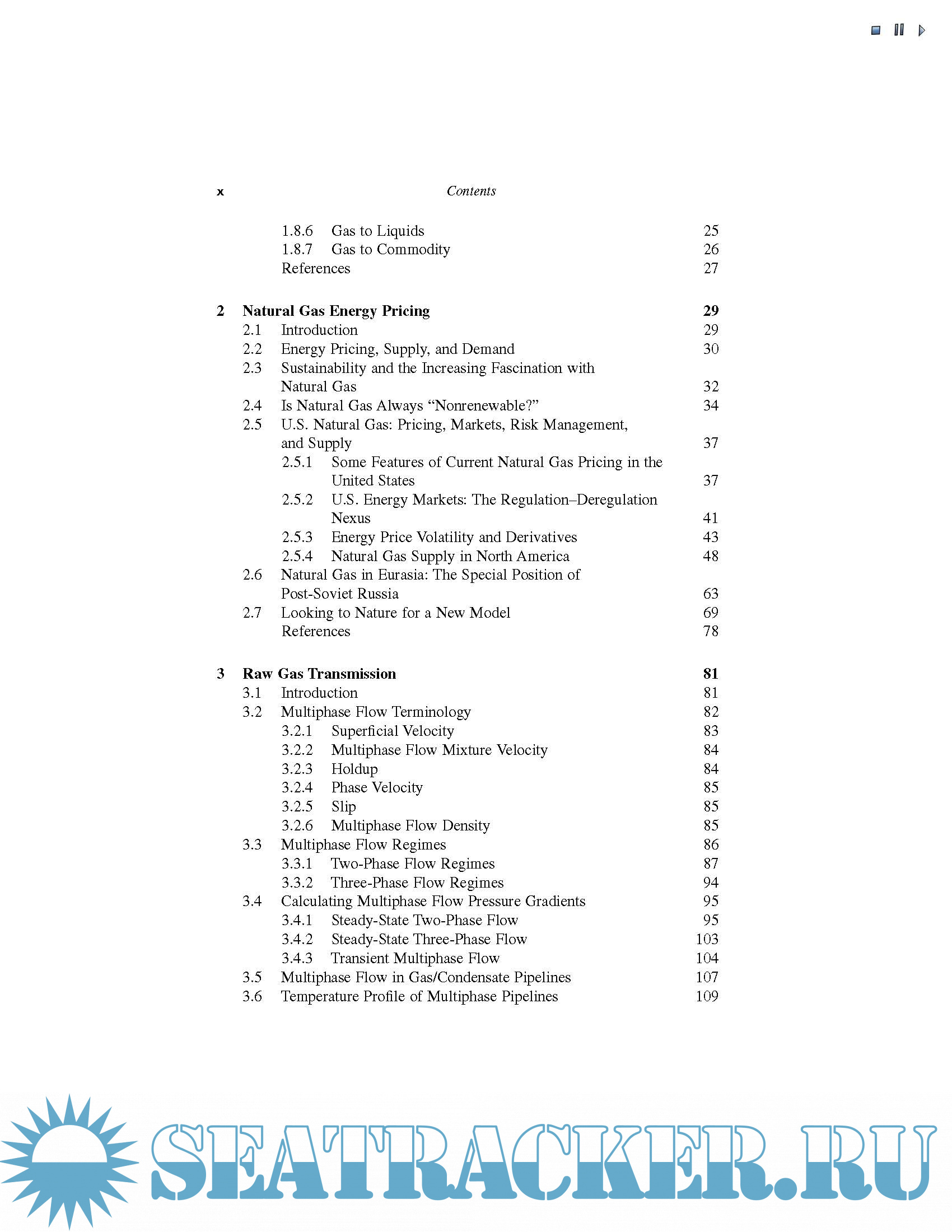 Year: 2006 Language: english Author: Saeid Mokhatab, William A. Poe, James G. Speight Genre: Handbook Publisher: Gulf Professional Publishing Edition: 2006 ISBN: 978–0–7506–7776–9 Format: PDF Quality: eBook Pages count: 672 Description: The de-carbonization of fuels, a process that started two centuries ago and has little to do with often strident environmental ideologues will position natural gas as the next premier fuel of the world economy. The world, headed by North America, is shifting towards natural gas for power generation as a substitute for coal and oil. Nuclear, while it would be the obvious competitor still seems to suffer from adverse publicity and real large up-front costs and economy of scale requirements. Eventually, the real breakthrough for natural gas use must be its major contribution as a fuel used for transportation, not necessarily directly as compressed natural gas for engine combustion but indirectly, providing the necessary electricity in electrified transportation. There are plentiful natural gas supplies in the world. They are also diverse, compared to oil, and this makes natural gas far more attractive from a geopolitical point of view. Russia, a non-OPEC member has the largest proven reserves. Emerging or speculated consumption by China and India, the always large U.S. energy appetite, along with maturing U.S. domestic production are the primary reasons for the huge expected demand for natural gas transportation from producers to consumers. Natural gas, compared to oil, is far more cumbersome to handle, process, transport and store. There are two common means of transport: pipelines and liquefied natural gas (LNG). Compressed natural gas intended to be transported in sea-going vessels may also emerge. Pipelines are not practical in almost all cases of sea distances longer than 500 miles. This is the reason for the recent major buildup of LNG facilities throughout the world. In the consuming nations, once LNG trade emerges in a large scale the natural gas prices are likely to be kept reasonable for decades.