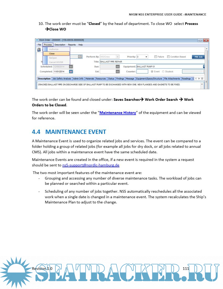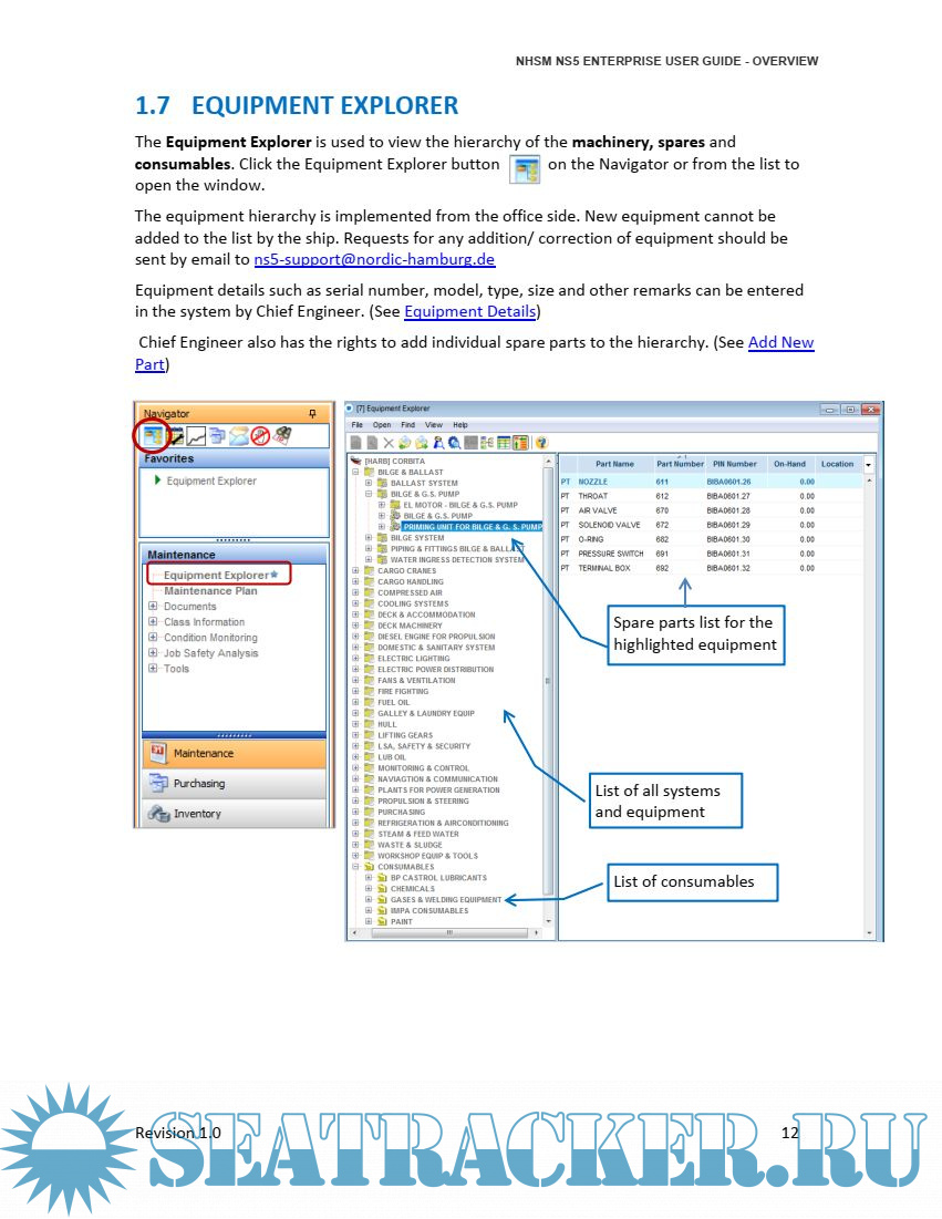Year: 2015 Language: english Author: NHSM Genre: Guide Publisher: NHSM Edition: 1.0 Format: PDF Quality: eBook Pages count: 136 Description: NS5 Enterprise is composed of a hierarchy of equipment, supplies, parts, resources andfinancial cost centers. Attached to these are nameplate data, standard jobs, unplanned work,inventory levels, maintenance and purchasing histories. NS5 Enterprise helps with the proper planning and maintenance of a vessel and provides the accurate and comprehensive record keeping required by class societies, flag and port state regulations and financial auditors. This guide will focus on the Maintenance and Purchasing module.