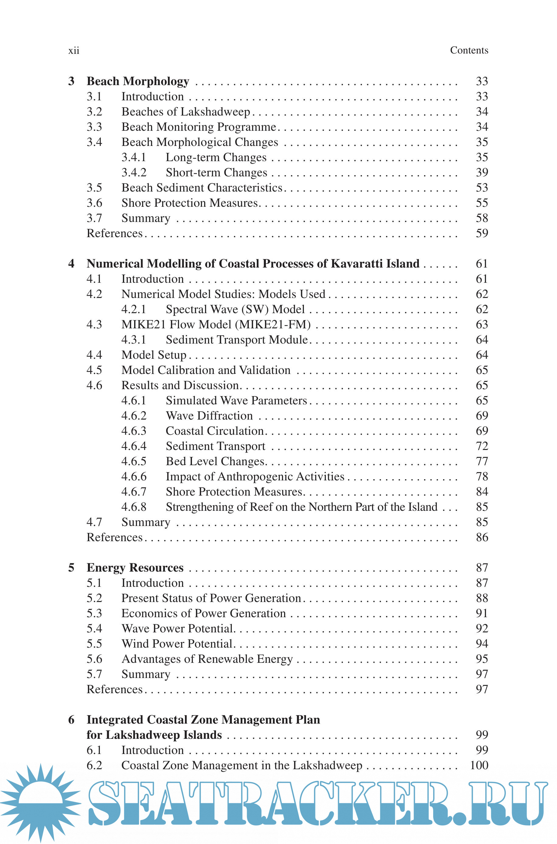 Year: 2015 Language: english Author: T.N. Prakash, L. Sheela Nair Genre: Research papers Format: PDF Quality: eBook Pages count: 121 Description: The Lakshadweep islands are a group of 36 coral islands in the Indian Ocean. These small islands are unique for their aquatic bio-diversity and vast blue lagoons. This book presents the results of studies done by the authors during the period 1990 to 2009 that address the beach morphology, hydrodynamics, energy resources and management options with special reference to the issue of both natural and anthropogenic coastal erosion. The relatively low island elevation makes the islands more susceptible to high-wave attack and coastal flooding during adverse weather conditions. The islands are also prone to risks from episodic events like cyclones and deep depressions. This highlights the need for a comprehensive study of the wave, climate and coastal processes at work during different seasons to delineate the factors responsible for shoreline changes and also to identify the locations that need protection and the management options.