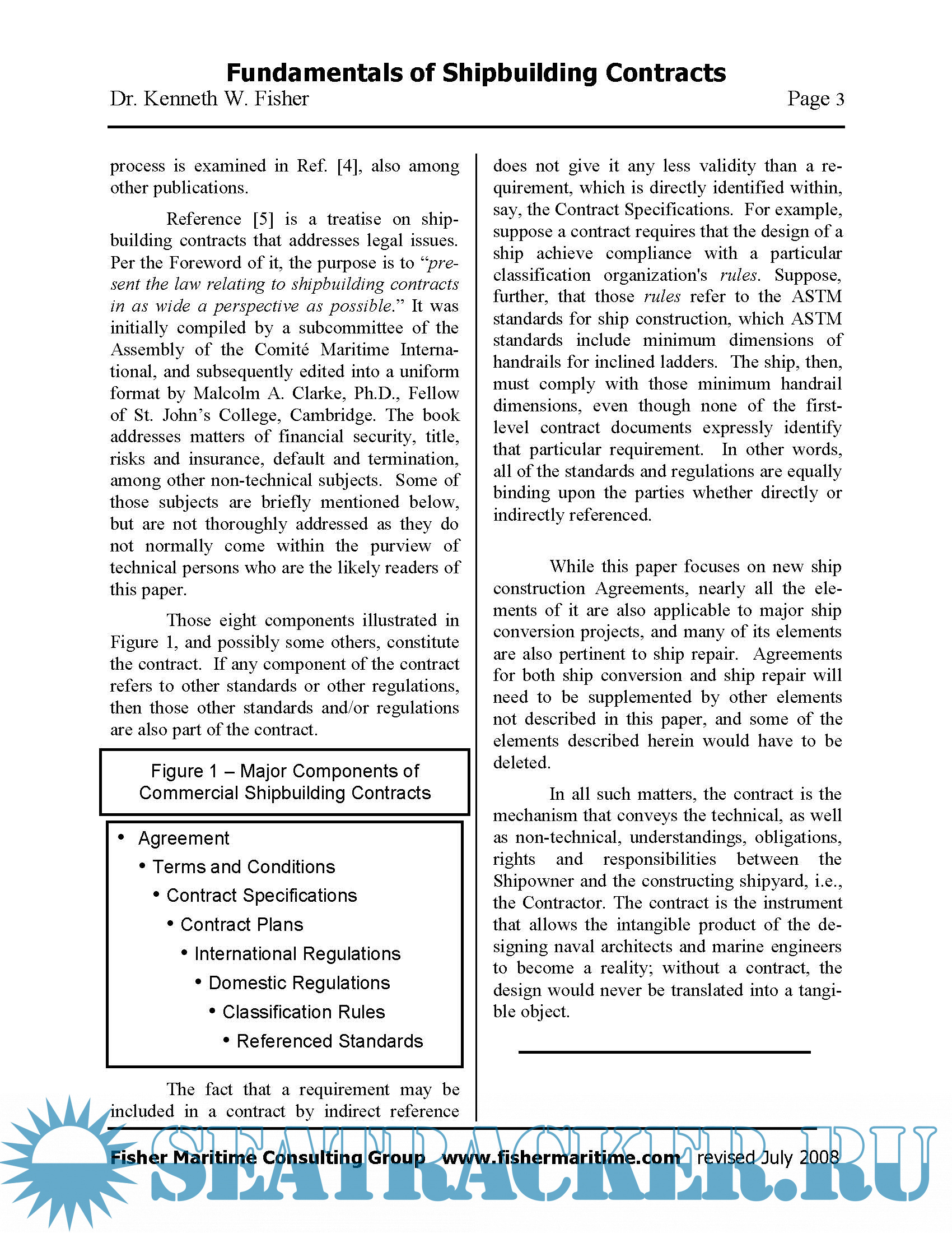 Description: This paper provides a description of the elements of shipbuilding contracts, and the purpose of each such element of the contract, all in a manner that is suitable for persons who are not lawyers. The ultimate purpose of this paper, by providing insights based on actual shipbuilding contractual experiences, is to assist readers in the avoidance of contract management difficulties as well as the more significant contractual disasters.