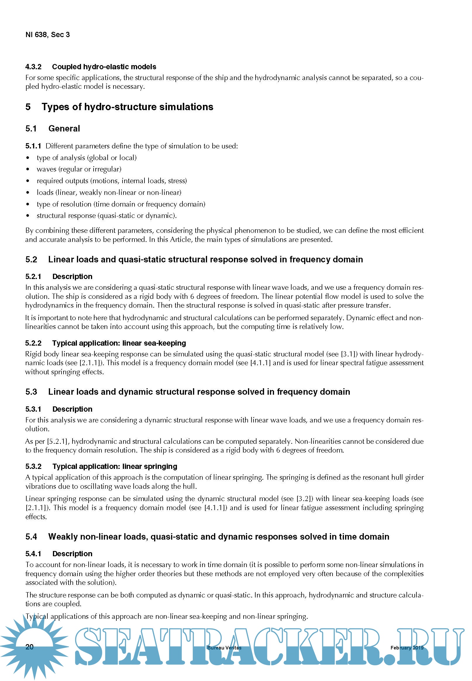Description: In the design process of ships and offshore units, long-term direct hydro structure analysis, are widely used to assess the robustness of a given design regarding the possible failure modes. Several methods can be used to assess the extreme stress in the structural members or the fatigue damage, depending on the loads to be considered and the type of response to compute. This Guidance Note describes various methods and tools that can be used for the direct calculations of the hydro-structural response of ships and floating or fixed offshore units. The main purpose of the present Guidance Note is to present several approaches to perform a long-term analysis and to provide the associated theoretical background. This Guidance Note mainly focus on the tools and background of the long-term analysis itself, however it also provides information on environmental conditions and hydro-structure models.