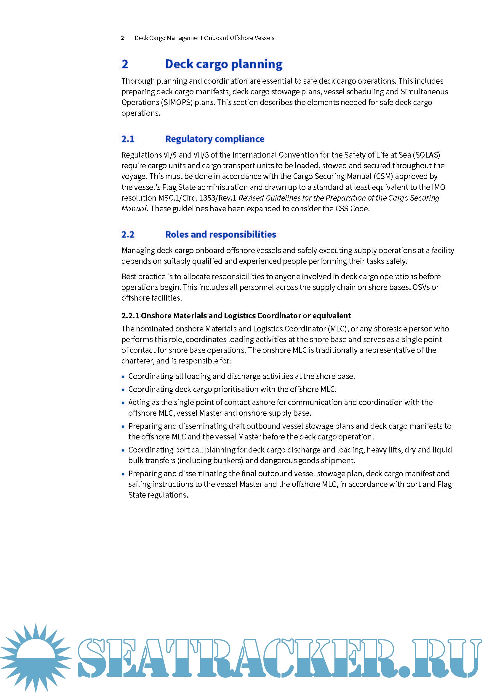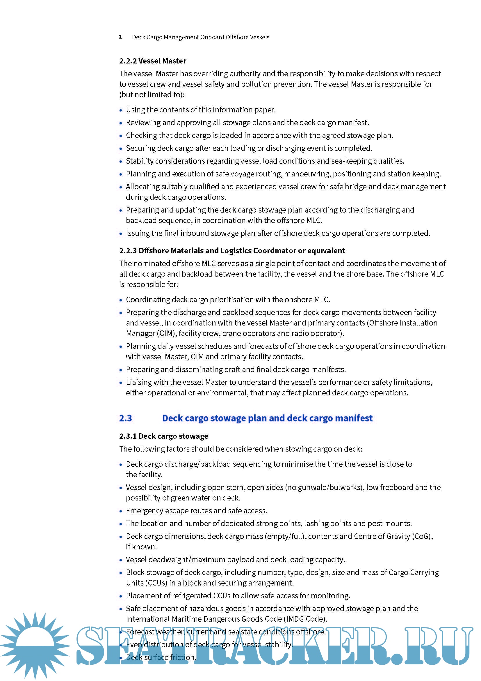 This information paper covers work performed in the offshore industry by personnel involved in managing offshore facilities, shore bases and vessels engaged in deck cargo operations, including: