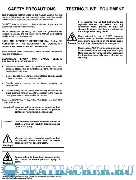 Year: 2009 Language: english Author: Cummins Generator Technologies LTD Genre: Manual Format: PDF Quality: eBook Pages count: 29 Description: To successfully carry out the various test procedures recommended in this manual, certain test instruments are essential. The following lists detail the basic requirements in this respect.