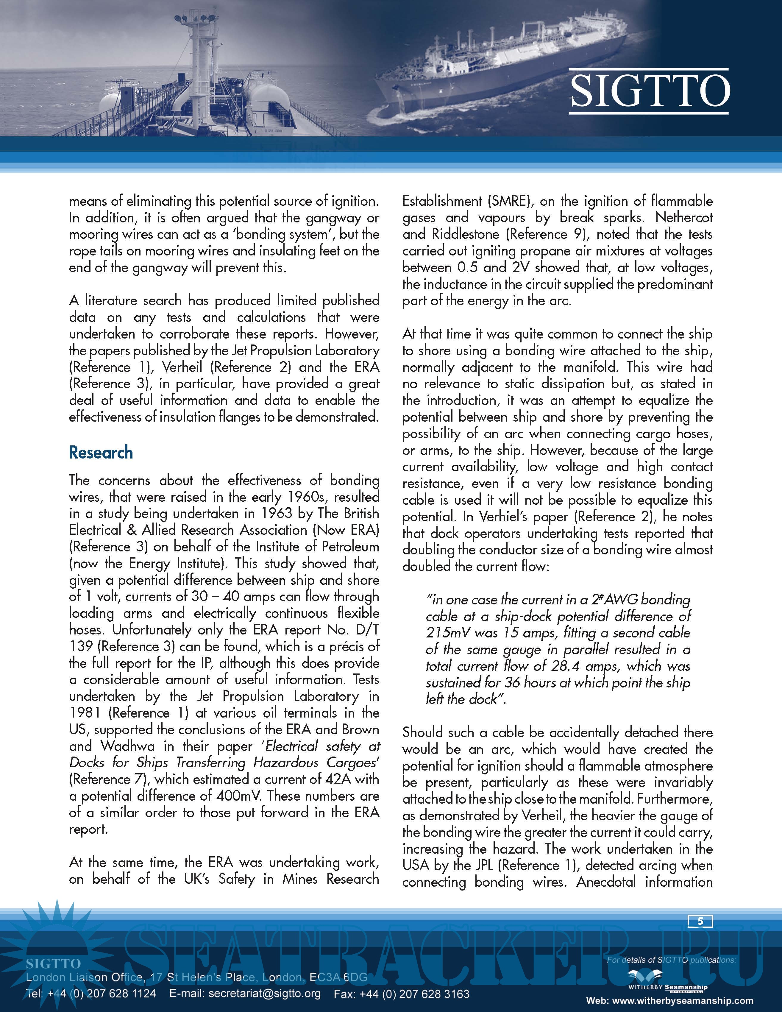 A Justification into the Use of Insulation Flanges (and Electricity Discontinuous Hoses) at the Ship/Shore and Ship/Ship Interface