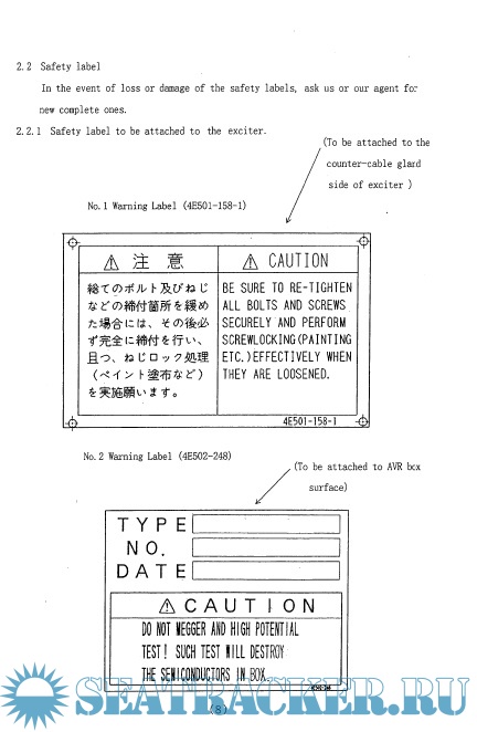 Instruction manual for brushless A.C. Generator Class F Model FE, FEK