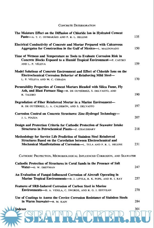 Year: 2000 Language: english Author: Sheldon W. Dean, Guillermo Hernandez-Duque Delgadillo & James B. Bushman Genre: Research papers Publisher: ASTM ISBN: 0803128738 Format: PDF Quality: OCR without errors Pages count: 314 Description: This publication, Marine Corrosion in Tropical Environments, contains papers presented at the symposium of the same name held in Orlando, Florida, on 13 November 2000. The symposium was sponsored by ASTM Committee G01 on Corrosion of Metals, in cooperation with NACE International and the University of Mayab, Merida, Yucatan, Mexico. Sheldon W. Dean, Air Products and Chemicals, Inc., Guillermo Hernandez-Duque Delgadillo, Universidad del Mayab, and James B. Bushman, Bushman & Associates, presided as symposium chairmen and are editors of this publication.