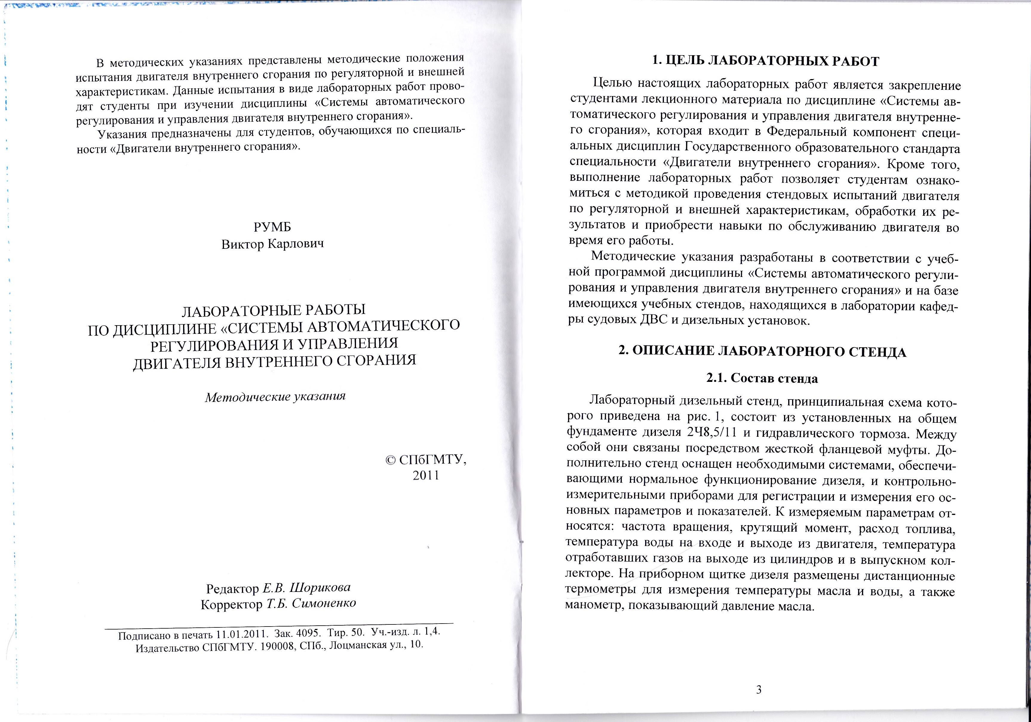 Методические указания разработаны в соответствии с учеб¬ной программой дисциплины «Системы автоматического регули¬рования и управления двигателя внутреннего сгорания» и на базе имеющихся учебных стендов, находящихся в лаборатории кафед¬ры судовых ДВС и дизельных установок.
