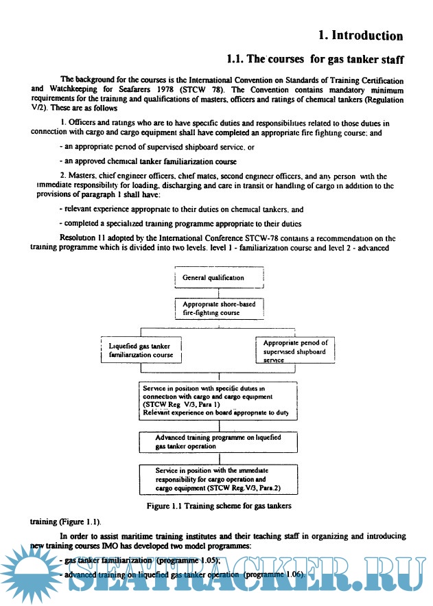 The structure of the manual is based on IMO Model Course 1 .06 - Advanced Training Programme on Liquefied Gas Tanker Operation . The manual deals with operational matters. construction of the ship and equipment in relation to the safety transport of liquefied gases at sea and refers to the interrnational and national regulations detailed in chapter 4 Rules and Regulations.