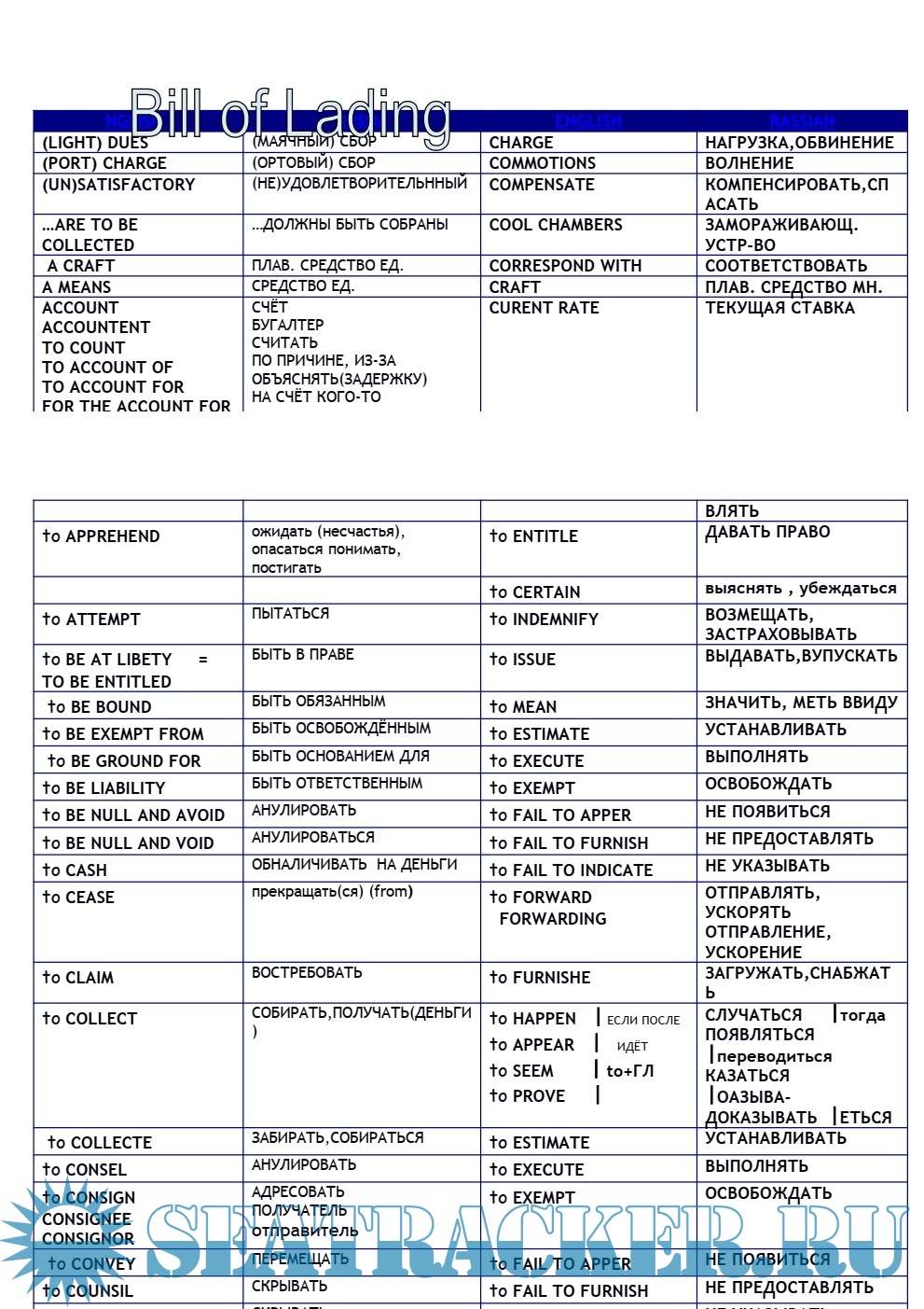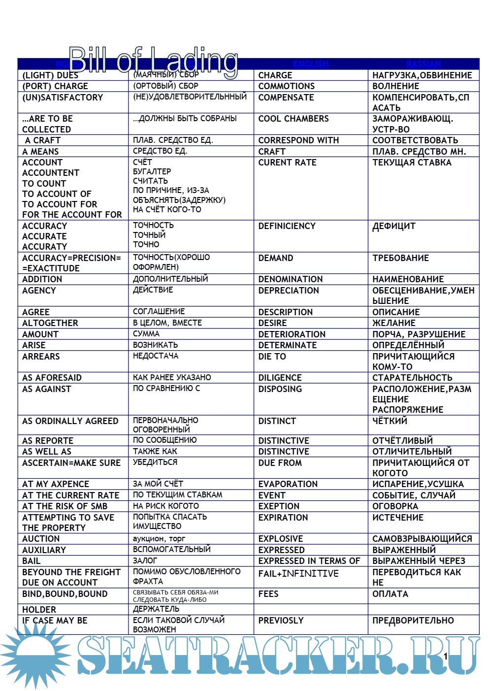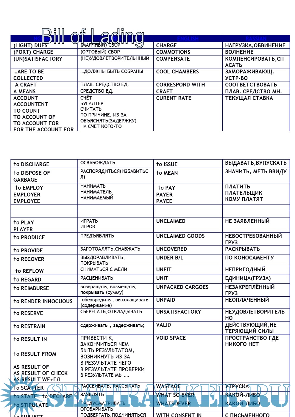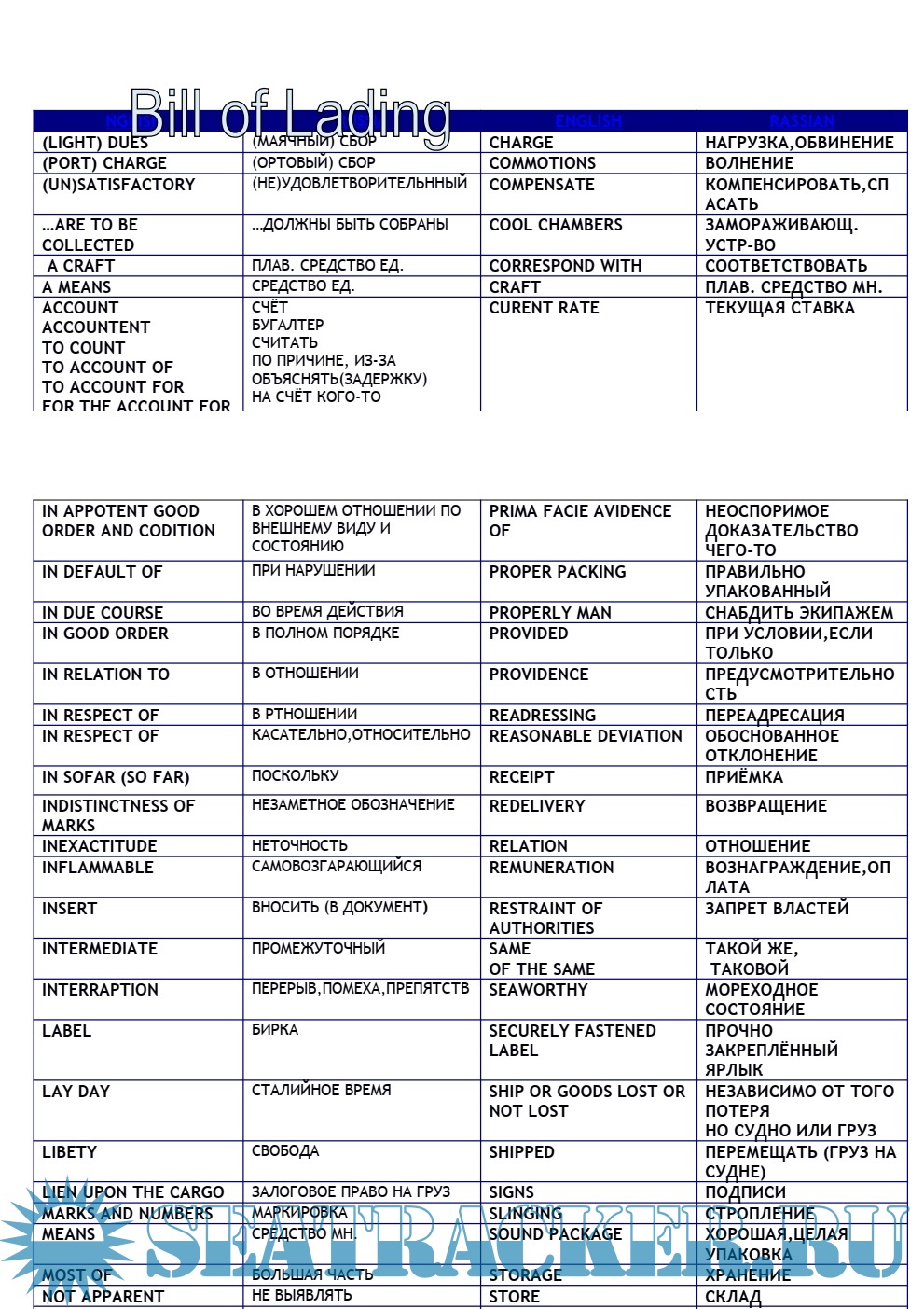 Словарь слов и выражений, применяемых в коносаментах / English-Russian Glossary of Words and Expressions Used in Bills of Lading