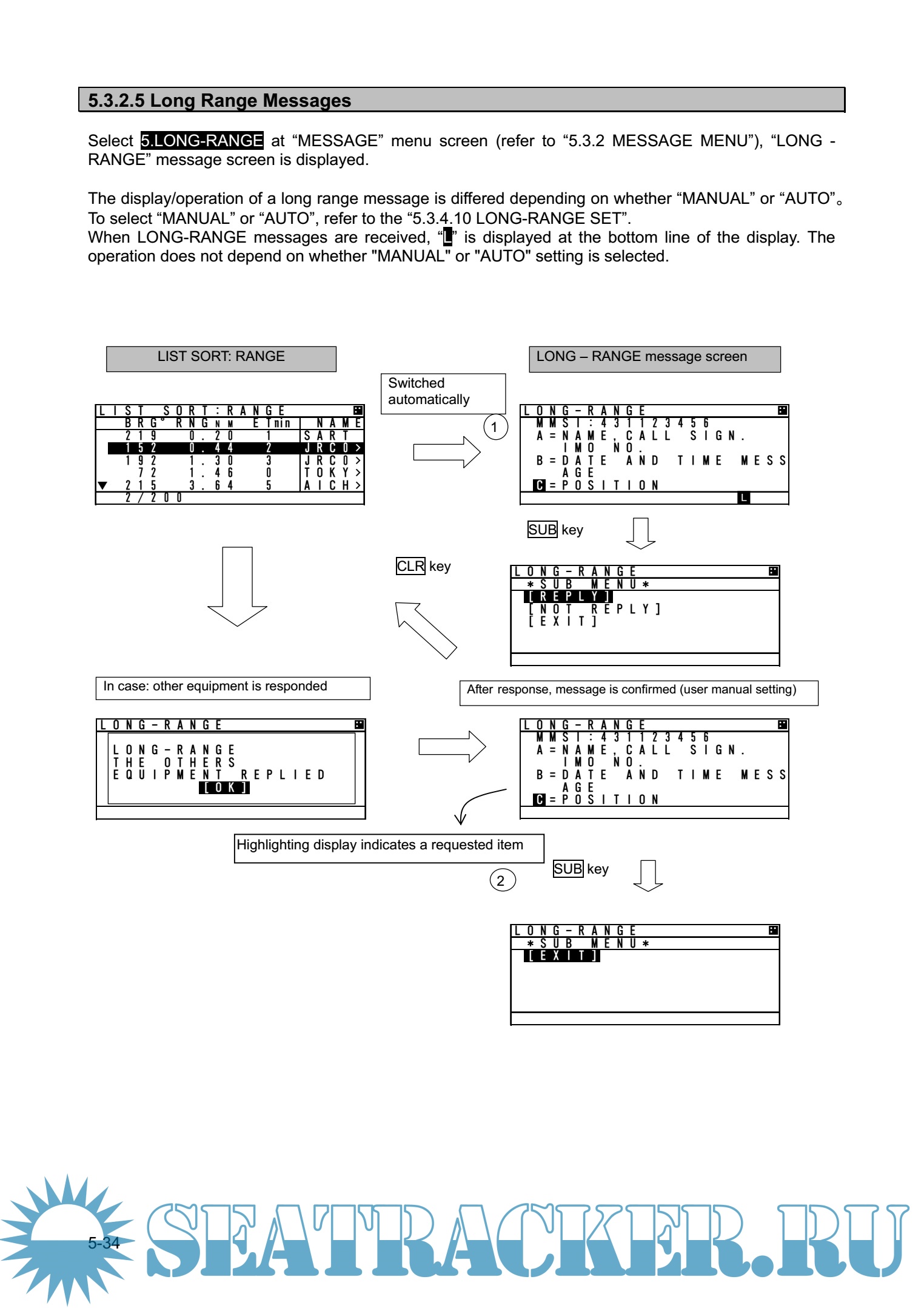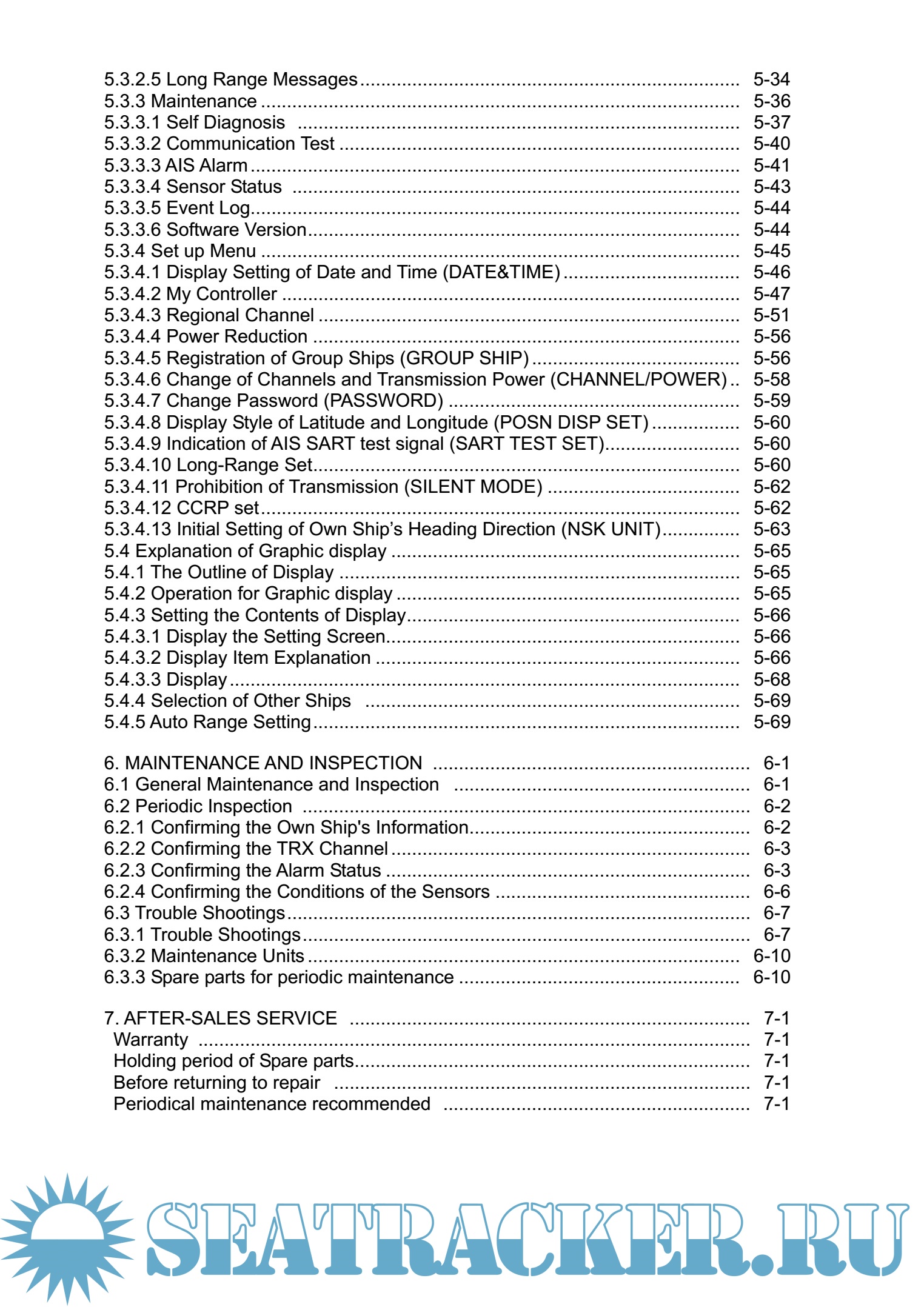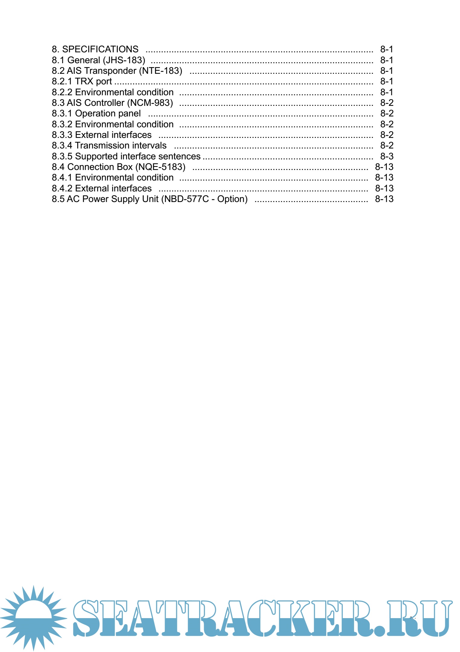 Year: 2012 Language: english Author: JRC Genre: Manual Publisher: JRC Edition: 1 Format: PDF Quality: eBook Pages count: 126 Description: Automatic Identification System (AIS) is a maritime navigation and radio communication system. This system intends to enhance the safety of life at sea, the safety and efficiency of navigation and the protection of the marine environment by communicating navigational information automatically on VHF channels between ship to ship and ship to shore. JHS-183 meets the requirements of the SOLAS Conventions for the Class A shipborne equipment of the universal AIS. JHS-183 mainly consists of AIS Transponder, Connection Box and AIS Controller. The combined antenna and transponder design allows installation at any convenient location on any vessels. The small and simple design controller allows easy installation and operation. JHS-183 employs the latest technologies such as digital signal processing, circuit integration technology, complies ensure high performance and high reliability. ● Fully Complies with International Regulations ━━━━━━━━━━━━━━━━━━━━━━━━━━━━━━━━━━━━━━━━━━━ JHS-183 is designed to meet the requirements of the SOLAS Conventions for the Class A shipborne equipment of the universal AIS and fully complies with international regulations: IMO MSC74(69) Annex 3, ITU-R M.1371, IEC61993-2, IEC60945 etc. ● Combined Antenna and Transponder for Ease of Installation ━━━━━━━━━━━━━━━━━━━━━━━━━━━━━━━━━━━━━━━━━━━ JHS-183 employs the combined antenna and transponder design. This design allows installation at any convenient location on any vessels. For the connection between above deck component and below deck component, only one cable is needed. ● Increased Probability of Vessel Detection ━━━━━━━━━━━━━━━━━━━━━━━━━━━━━━━━━━━━━━━━━━━ JHS-183 is equipped with a guard zone alert function. When preset guard zone range and other vessel enters into the zone, JHS-183 indicates and sounds the alert. This function enhances probability of vessel detection. ● Recognition of Own-group Vessels ━━━━━━━━━━━━━━━━━━━━━━━━━━━━━━━━━━━━━━━━━━━ JHS-183 is equipped with a recognition of own-group vessels function. When preset own-group vessels’ identification in advance, the display indicates the own-group vessel sign. This sign allows easy recognition of own-group vessels. ● Self-diagnosis Function ━━━━━━━━━━━━━━━━━━━━━━━━━━━━━━━━━━━━━━━━━━━ JHS-183 is equipped with a built-in automatic self-diagnosis function. This function allows easy maintenance and high system reliability. ● System Integration Availability ━━━━━━━━━━━━━━━━━━━━━━━━━━━━━━━━━━━━━━━━━━━ JHS-183 is equipped with various interfaces. These interfaces allow system integration and future expansions