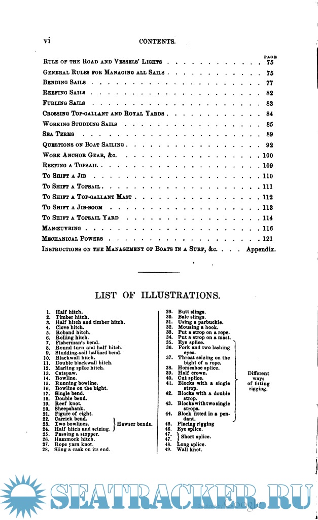 Description: Containing Practical Rules for Fitting and Placing Riggings, Managing Sails, etc, Complete illustrations of all The Standard Riggings, The Knots, Bends and hitches, in Use and A Catechism of Rigging Ships, Boat Sailing, Bending, Reefing, and Furling Sails, working Anchor Gear, Manoeuvring . Used on Board H.M.S Britannia, With The Sanction of the Lords Commissioners of The Admiralty.