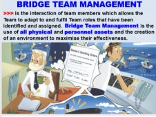 Description: BRIDGE TEAM MANAGEMENT >>> is the interaction of team members which allows the Team to adapt to and fulfill Team roles that have been identified and assigned. Bridge Team Management is the use of all physical and personnel assets and the creation of an environment to maximize their effectiveness.