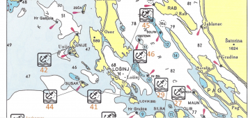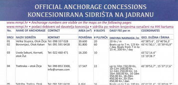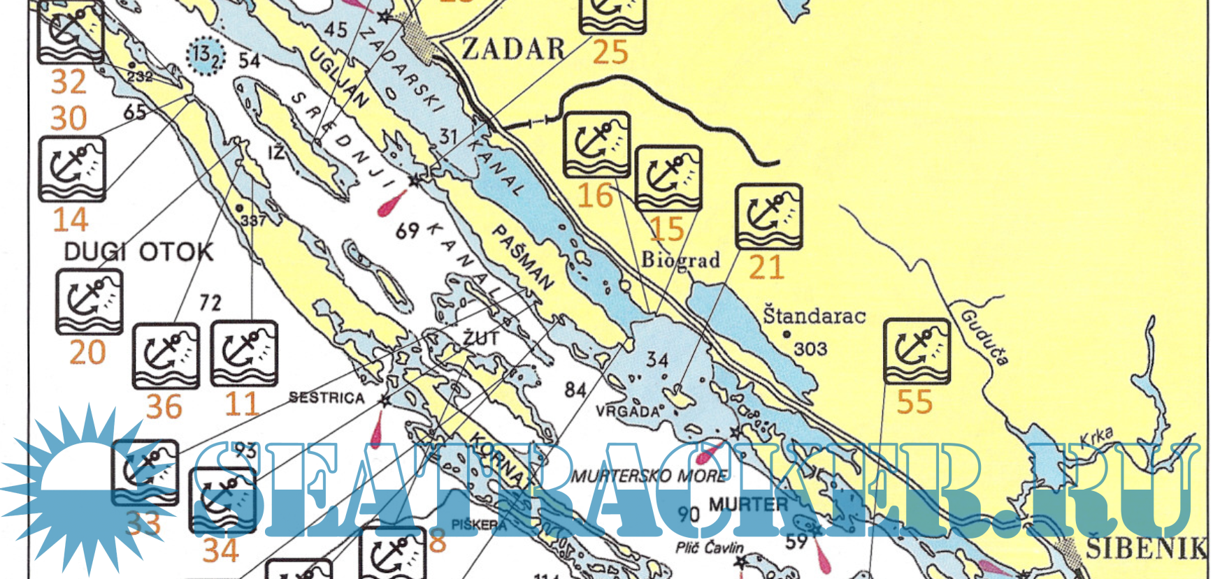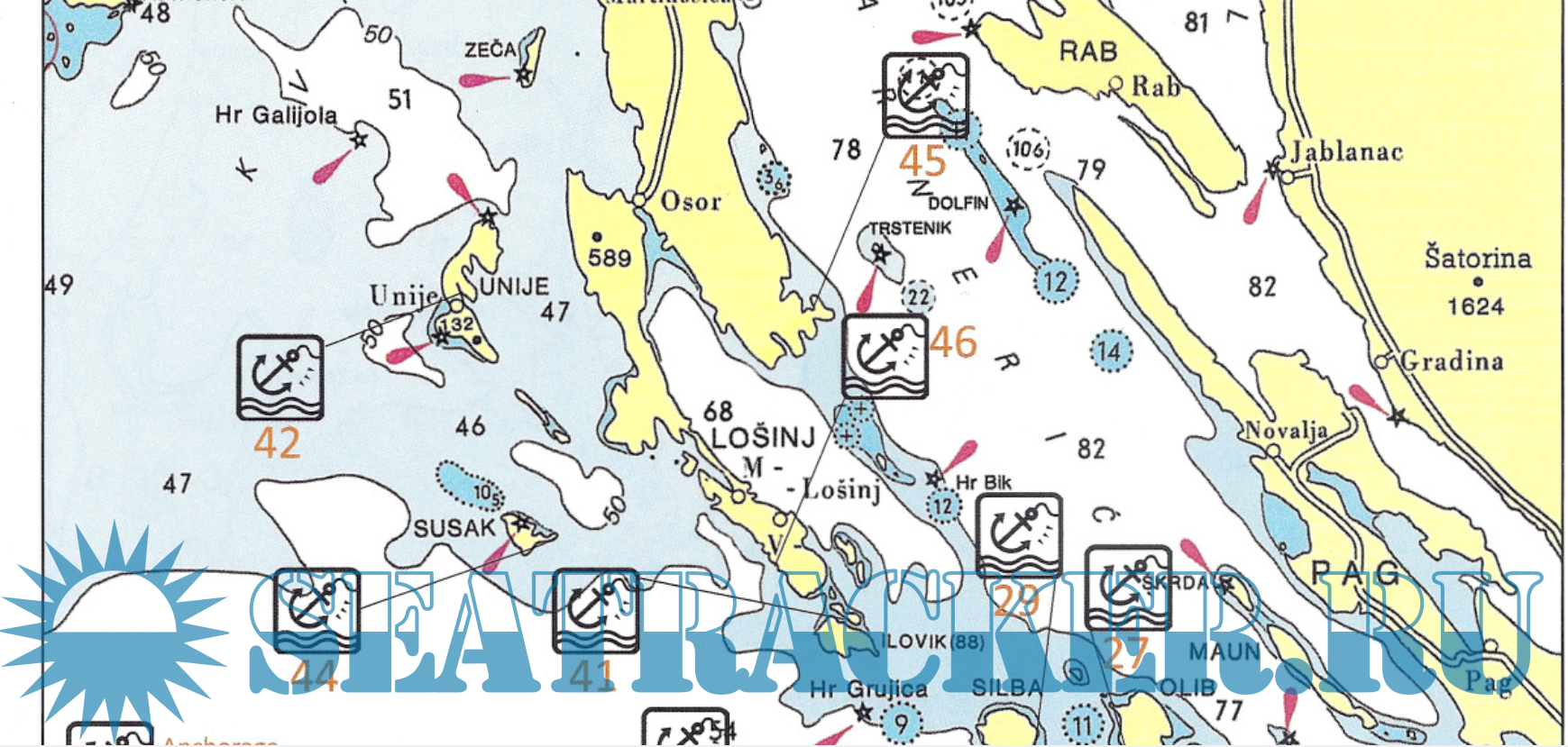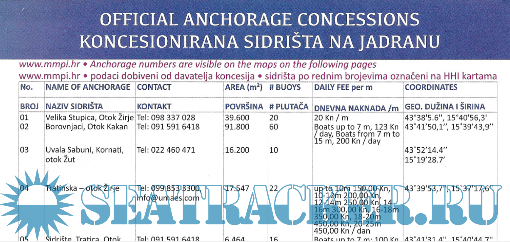 Описание: Карты с таблицами и GPS координаты якорных стоянок в Хорватии