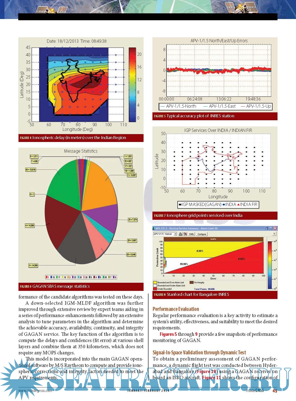 Description: The GPS Aided Geo Augmented Navigation (GAGAN) system was developed by the Indian Space Research Organization (ISRO), together with Airports Authority of India (AAI), to deploy and certify an operational satellite-based augmentation system (SBAS). The system’s service area covers the Indian Flight Information Region (FIR), with the capability of expanding to neighboring FIRs. GAGAN provides a civil aeronautical navigation signal consistent with International Civil Aviation Organization (ICAO) Standards and Recommended Practices (SARPs) as established by the Global Navigation Satellite System (GNSS) Panel. The GAGAN system provides non-precision approach (NPA) service accurate to within the radius of 1/10th of a nautical mile (required navigation performance or RNP-0.1) over the Indian FIR as well as precision approach) service of APV-1.0 (APproach with Vertical guidance) over the Indian landmass on nominal days.