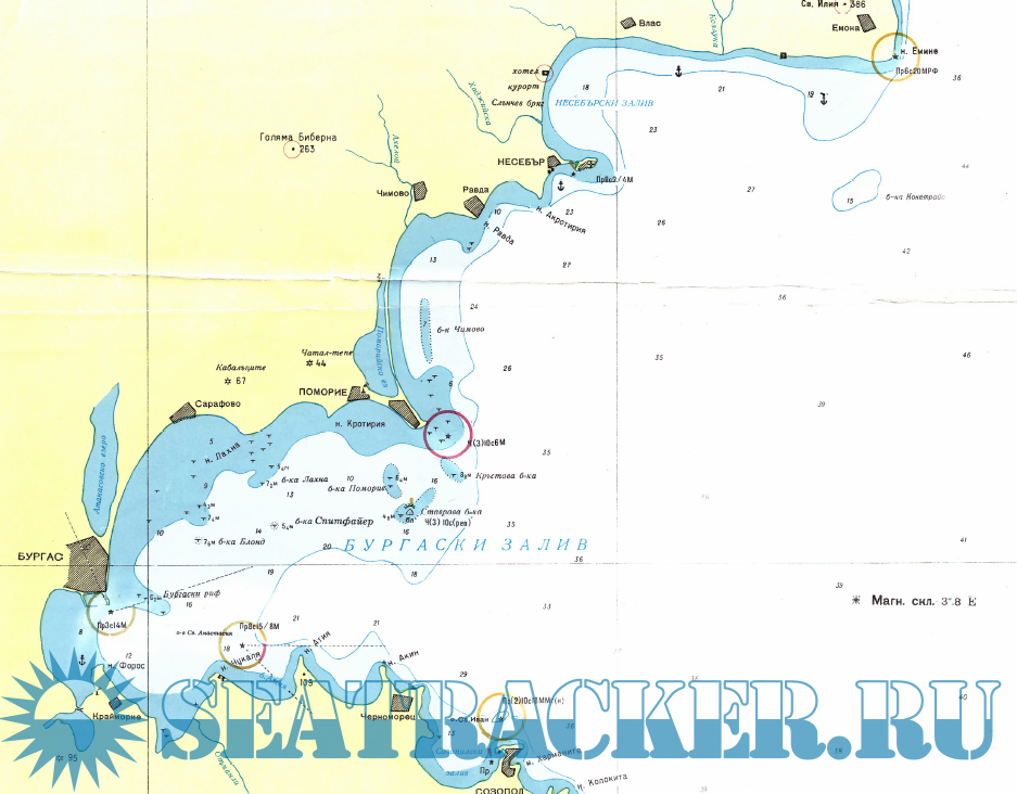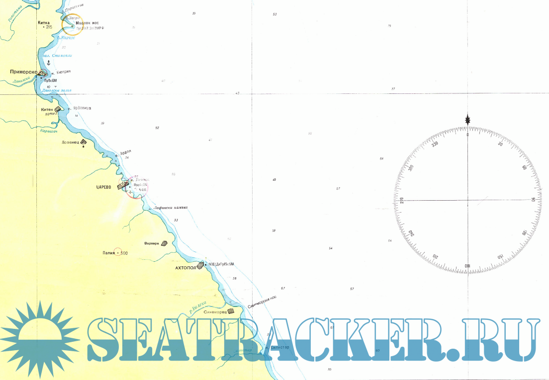 Description: This is a chart, part of the Bulgarian coast, used in Bulgarian marine academies.