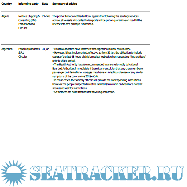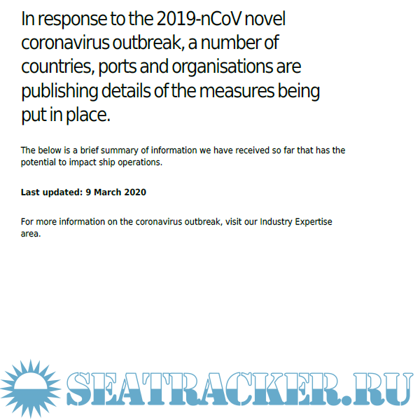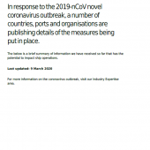 Description: In response to the 2019-nCoV novel coronavirus outbreak, a number of countries, ports and organisations are publishing details of the measures being put in place.