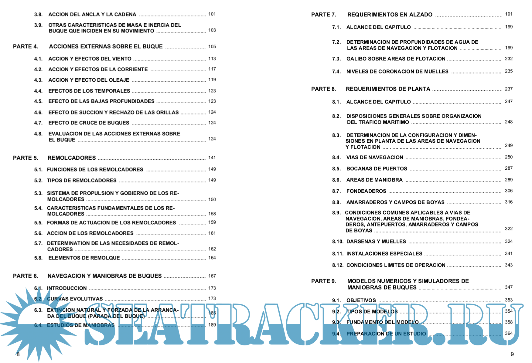 Year: 2000 Language: spanish Author: Carlos Sanchidrián et alli Genre: Reference book Publisher: Puertos del Estado (Spain) Edition: 1 Format: PDF Quality: eBook Pages count: 437 Description: With the publication of the «Recommendations for the Design of the Maritime Configuration of Ports, Approach Channels and Harbour Basins» (ROM 3.1-99), Puertos del Estado is materializing one of the Codes anticipated in 1987 when the ROM (Recommendations for Maritime Works) Programme was started by order of the former Directorate General for Ports and Coasts of the Ministry of Public Works and Urban Development. These new recommendations strengthen the concept of port operability as a basis for laying down design criteria for the maritime configuration of ports, their approach channels and harbour basins.Therefore, ROM 3.1- 99 does not just set mandatory maritime-port safety requirements but also seeks to guarantee minimum vessel navigation and manoeuvrability conditions in port waters and, finally, contribute to optimise the operating system of the different port areas attending to vessel traffic. With this in mind, the main purpose of this ROM 3.1-99 is to design and build the maritime configuration of ports, their approache channels and harbour basins.Whilst not constituting a Regulation for Maritime Operation of these areas, the ROM 3.1-99 may easily be applied to this end, taking into account the fact that the maritime configuration of ports has to guarantee the limit operating conditions to be established for different vessel manoeuvring in port waters. To this end, and within its scope of application, the ROM 3.1-99 echoes the major, methodological renewal effort that Puertos del Estado has addressed for the whole ROM Programme, one of whose supports is precisely to make safety requirements compatible with those of functionality.The design of the cross section and the layout of vessel navigation and manoeuvring areas in ports calls for the external actions envisaged during the service period of these areas to be taken into account as well as the predicted vessel traffic and types.This circumstance provides the content of this ROM 3.1-99 with a functional view more adaptable to the integral planning process of maritime-port construction. These Recommendations reflect this modernizing effort and make use of the whole rich flow of technology currently existing in the field of vessel manoeuvrability and of the interaction of such vessels with their physical environment (wind, waves and current).To this effect, a suitable path is opened for the rational use of probabilistic methods, simulation techniques and scale model testing for full characterization of the most frequent manoeuvring of vessels operating in ports. The use of the most advanced technology in the maritime-port field for designing approach channels and harbour basins allows the user of these Recommendations, whether a planner, designer or builder, to propose a calculation methodology adaptable to the targets and the available resources, without detriment to setting minimum general requirements. In this way, the ROM 3.1-99 is configured as an open instrument which proposes advanced calculation lines coherent with the general provisions of international organizations (IMO, IMMA, etc.) and committed to achieving a high standard of safety and operability in our port waters. Additional info: There is official english version here