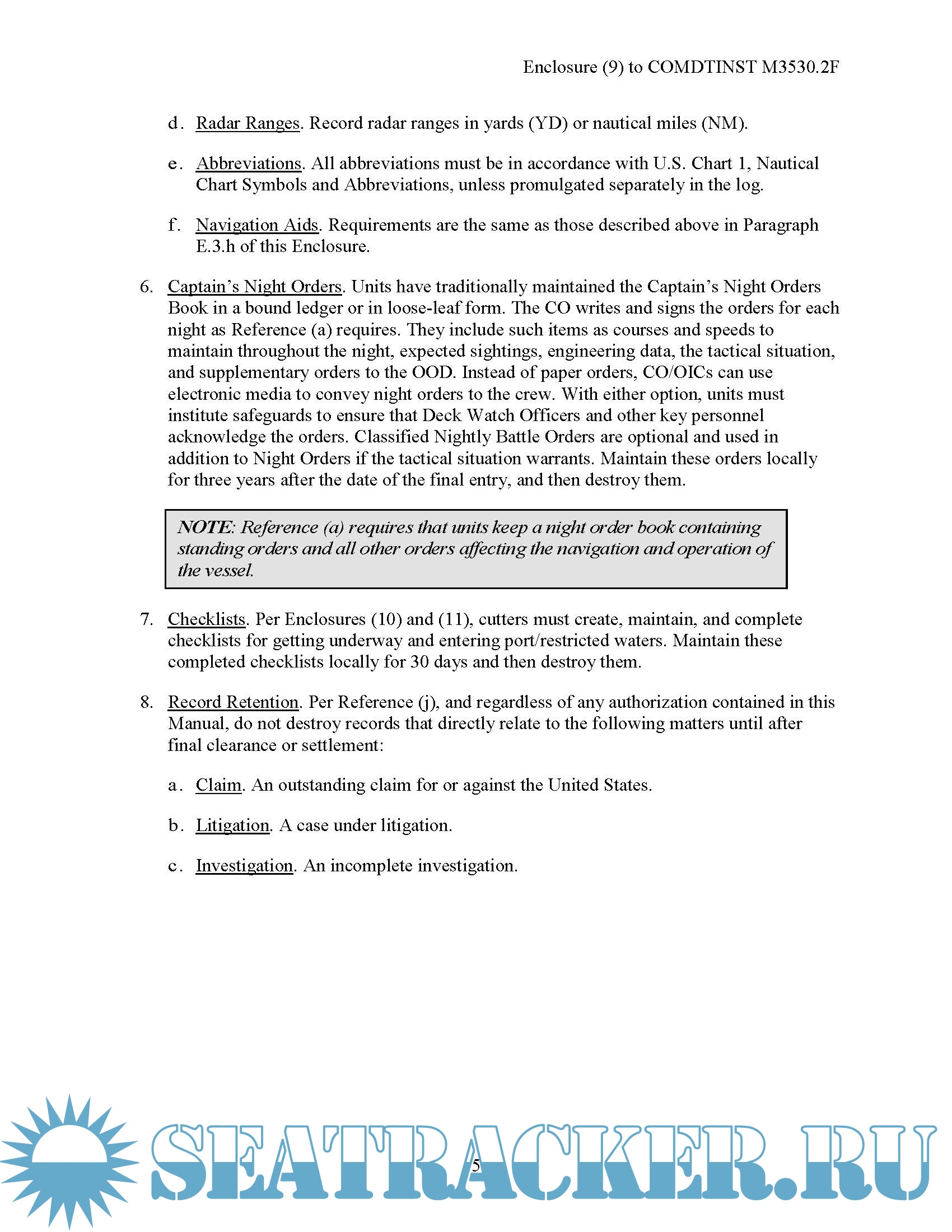 Description: This Manual updates the Coast Guard Navigation Standards for safe navigation of