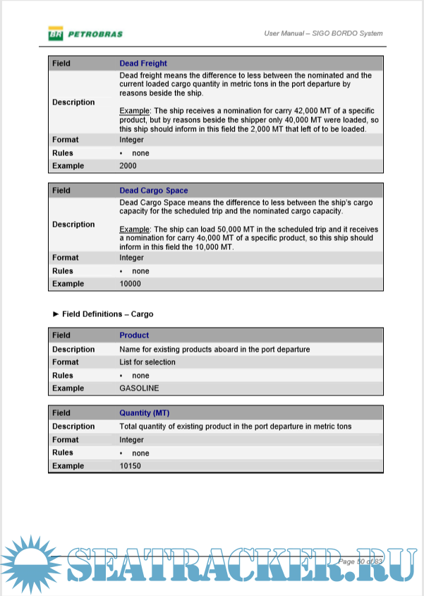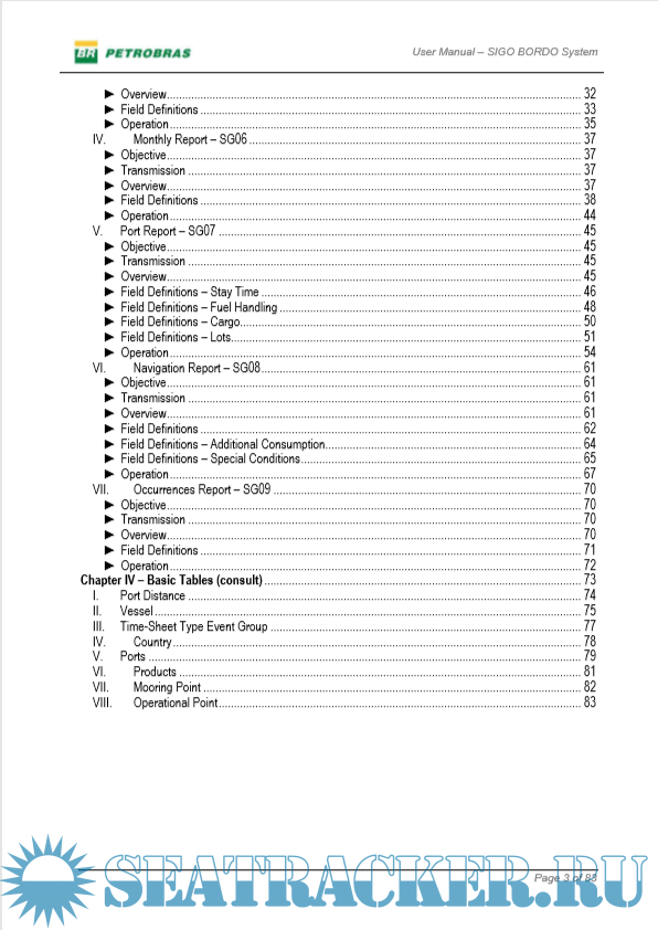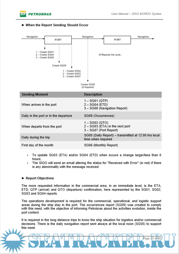 Description: User Manual for PETROBRAS' SIGO BORDO System, the online reporting system used by tanker fleet.