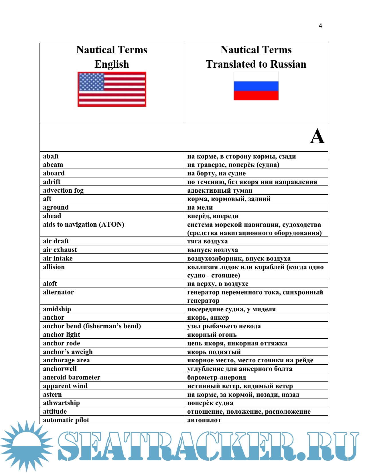 Англо-русский краткий словарь морских терминов - Glossary of Nautical Terms English-Russian