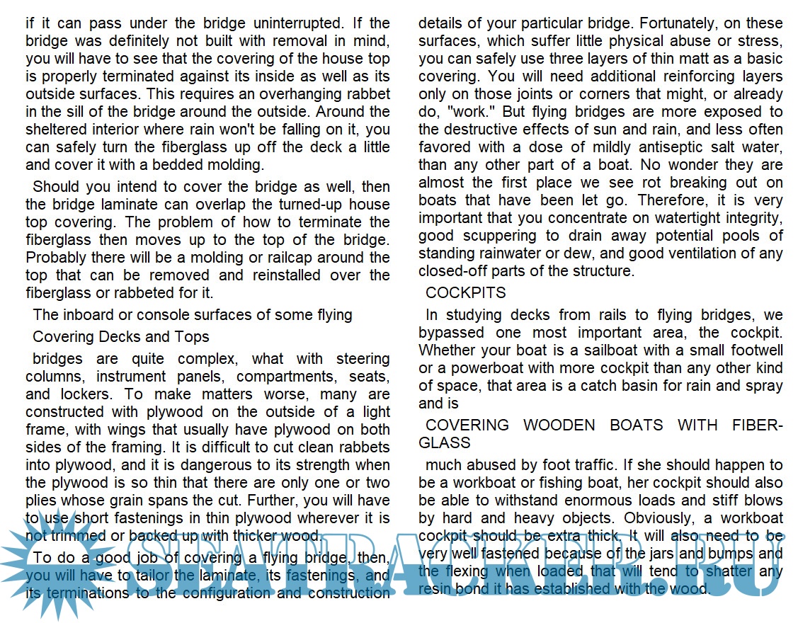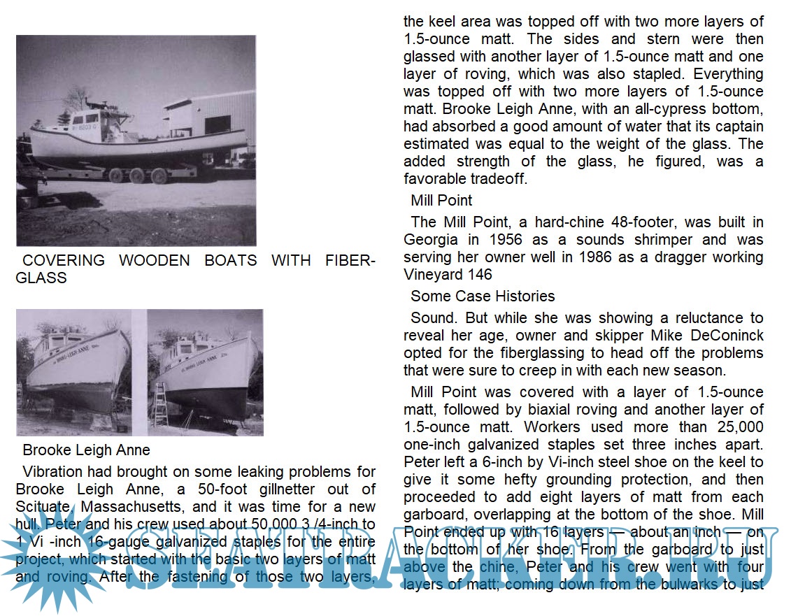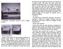 Description: Explains the advantages of applying a fiberglass coating to wooden boats, offers a step-by-step demonstration of the procedure, and shares the case histories of some fiberglassed boats