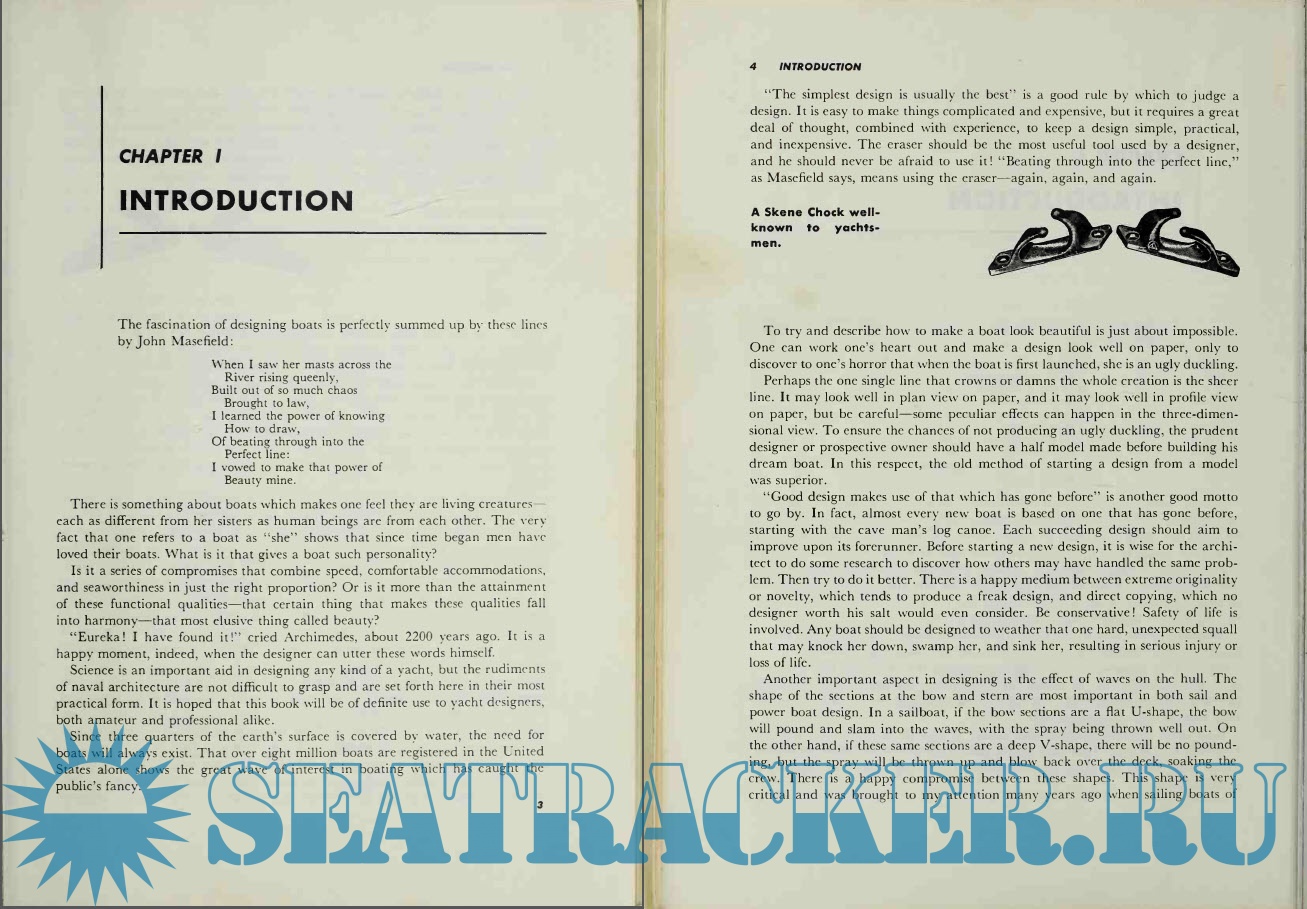 Year: 1983 Language: english Author: Francis S. Kinney Genre: Guide Publisher: DODD, MEAD & COMPANY Edition: Eighth Edition ISBN: 0-396-06582-1 Format: PDF Quality: Scanned pages Pages count: 375 Description: Once again Francis S. Kinney has thoroughly revised and brought up to date this valuable book on yacht design. New material has been added on: twelve-meters, handicap rules and changes that affect I.O.R. ratings, the Law of Mechanical Similitude, appearance, motor sailers, horsepower for displacement-type boats, more precise propeller calculations, trim tabs, a self-steerer, and inspection check list used by Rod Stephens, Jr. There is also a chapter on Mr. Kinney's own lovely boat, Santa Maria. Many new designs and illustrations are incorporated of such outstanding boats as the Sunfish, Soling, Southerly, Waupi, Mischief, Yankee Girl, Intrepid, Torea, and Palawan. All the information one needs to design both sailing and power vessels has been provided, including tools, drawings, specifications, balance of sailboats, planning powerboats, spars and rigging, propellers, rudders, resistance, tank testing, upkeep, a simple manual of calculations, weights, Southerly'^ calculations as an example, and useful data.