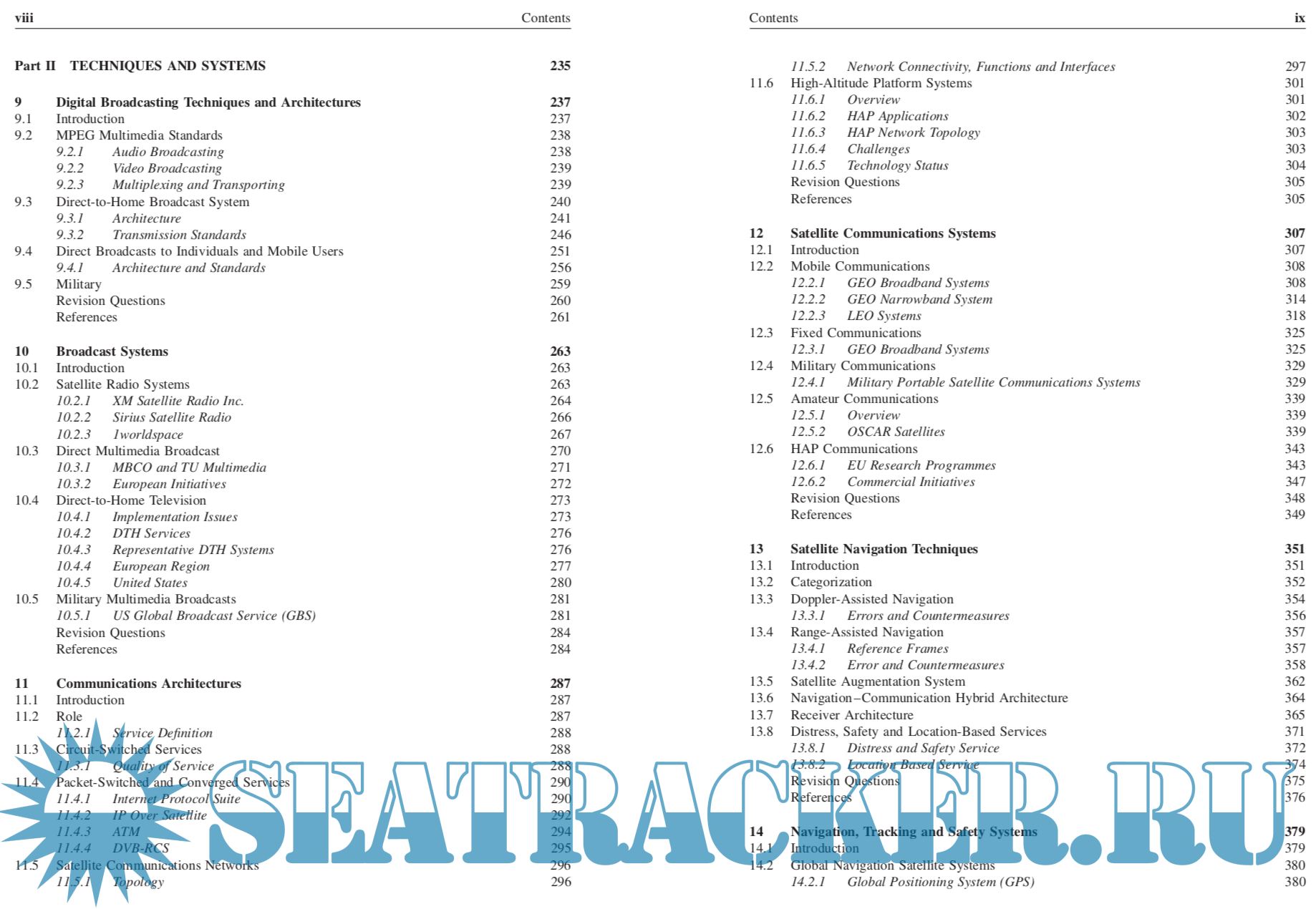 Year: 2010 Language: english Author: Madhavendra Richharia and Leslie David Westbrook Genre: Technical book Publisher: John Wiley and Sons Ltd. Edition: 1st ISBN: 978-0-470-71428-7 Format: PDF Quality: eBook Pages count: 481 Description: The past two decades have seen a quiet revolution in satellite-based services. Once the preserve of governments, international bodies, public utilities and large corporations, today the majority of satellite service users are individuals, who can now access, directly, a wide range of satellite services – typically using personal, mass-market and even handheld devices. These satellite systems now fulfil a variety of personal necessities and aspirations spanning telecommunications, broadcast services, navigation, distress and safety services and (indirectly) remote sensing, in the commercial, military and amateur sectors. It therefore seems an appropriate time for a book that addresses these services from the perspective of their support for, and functionality delivered to, individual users. This book therefore aims to: • enhance awareness regarding the expanding role of satellite systems in individuals’ daily lives; • lay a strong technical foundation of the basic principles and functioning of these satellite systems for personal communications, navigation, broadcasting and sensing applications; • illustrate current practice using selected example systems in each field; • review current trends in relevant satellite and related technology. The book aims to address an audience that is inquisitive and keen to understand the role of satellites in our daily lives and the underpinning concepts, and, in contrast to alternative offerings, the focus in this book is on the individual and the end-user application. It aims to provide all of the relevant concepts, in a clear and concise manner, together with descriptions of key systems as illustrations of their implementation in practice.