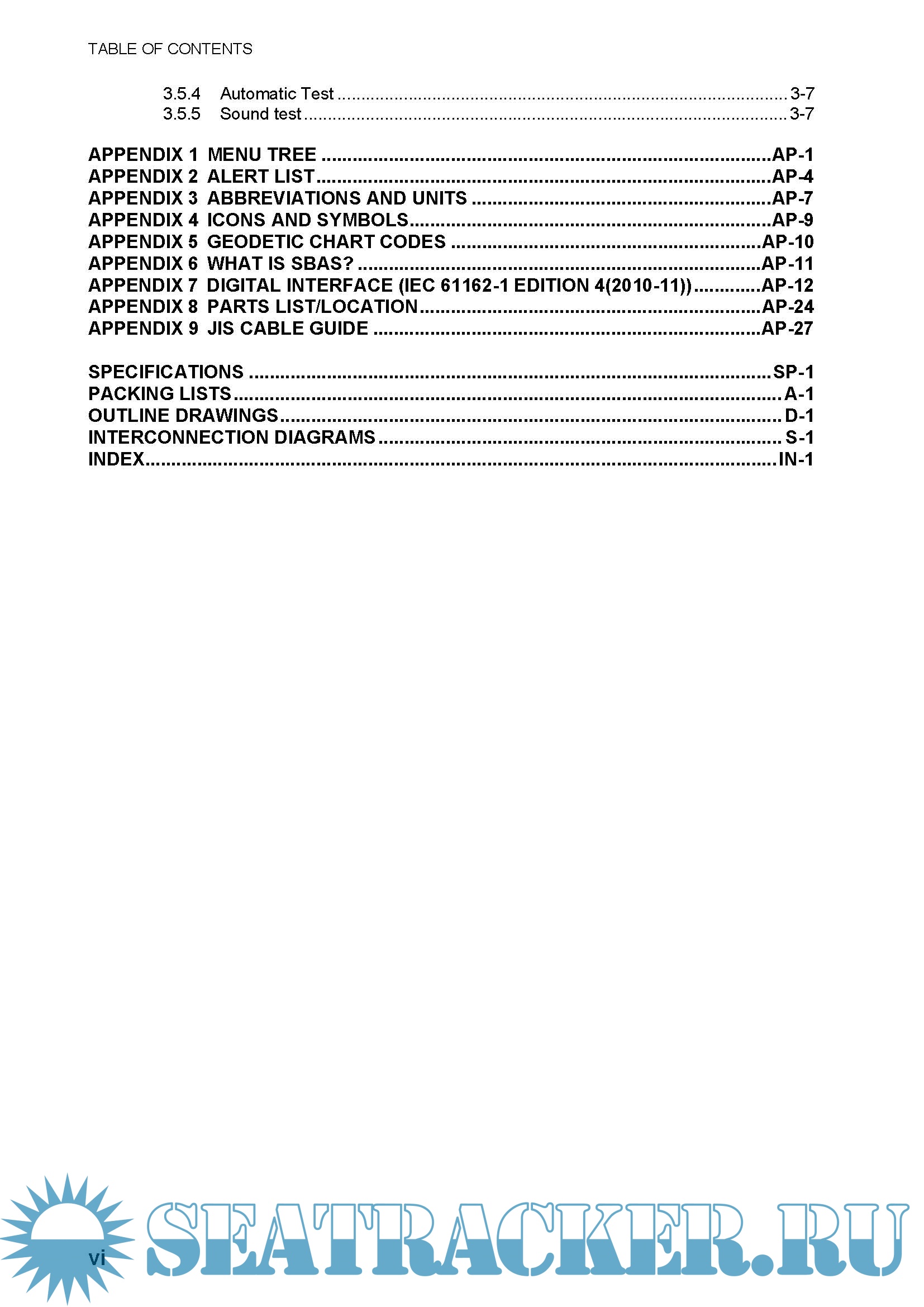 Year: 2020 Language: english Author: Furuno Genre: Manual Format: PDF Quality: eBook Pages count: 141 Description: The SC-70/SC-130 is a new Satellite Compass™ designed with FURUNO advanced GPS kinematic technology. This compass has a wide range of applications for both land and sea vessels. The main features are: • Meets the requirement for the following regulations: IMO MSC. 116(73), ISO 22090 Ed 2.0, IMO A. 694(17), IEC 60945, ISO 22090 Ed 2.0, IEC 61108-1 Ed 2.0, ISO 20672 Ed 1.0, IEC 61924-2 Ed 1.0, IEC 61162-1 Ed 4.0, IEC 61162-2 Ed 1.0, IEC 61162-450 Ed 1.0, IEC 62288 Ed 2.0, IEC 61924-2 Ed 1.0 RESOLUTION MSC. 302(87). • Can output speed for any set location, allowing monitoring of bow and stern berthing speeds without the use of optional equipment. • Perfect for use as a heading sensor for RADAR/ARPA, AIS, ECDIS and scanning SONARs. • There are no mechanical parts such as gimbals or a rotating motor, thus the compass is free from routine maintenance. • Geomagnetism does not affect the compass performance, making it usable on any vessel. • No need for speed correction, unlike a gyrocompass. • Short setting time • Easily integrated into existing ship-board network via Ethernet. • Remote Maintenance Service (RMS) ready, allowing hassle-free assistance when in port. • Can be connected using existing antenna cabling (SC-50/60/110/120 only) by adding the optional conversion kit. Note that existing antennas units must be replaced. (Non-IMO type only) • Uses multiple satellite types, eliminating the problem of not having enough satellites visible. (Non-IMO type only.)