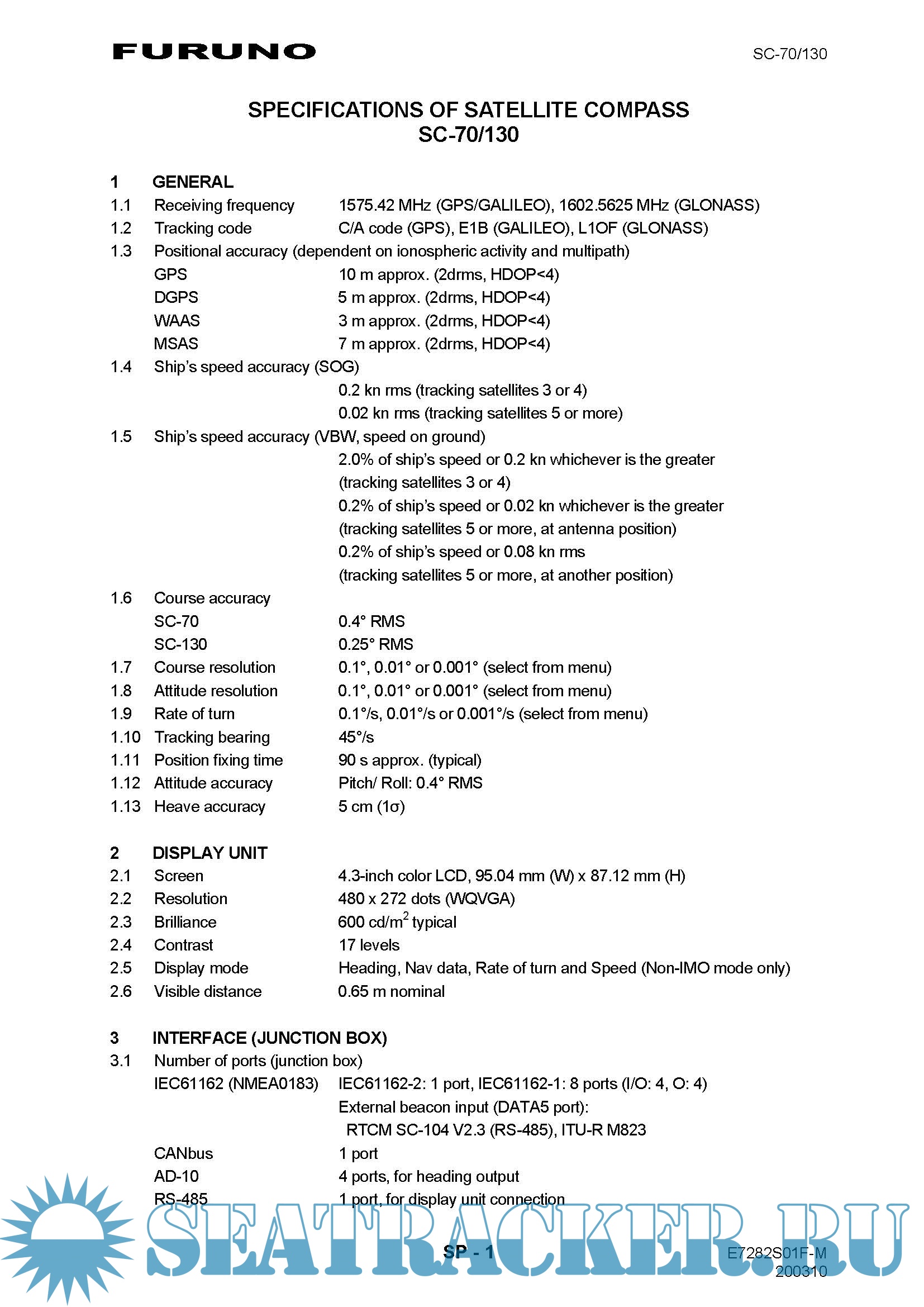 Description: The SC-70/SC-130 is a new Satellite Compass™ designed with FURUNO advanced GPS kinematic technology. This compass has a wide range of applications for both land and sea vessels.