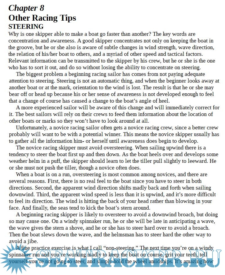 Year: 2012 Language: english Author: Steve Colgate Genre: Manual Publisher: International Marine/McGraw-Hill ISBN: 9780071793469 Format: EPUB Quality: eBook Pages count: 322 Description: Steve Colgate is a racing master, an Olympian, and a famous sailing teacher. In Performance Sailing and Racing, the author explains how to improve your sailing and push your boat to higher but safer speeds. Used as one of the text books at the many branches of the Colgate Sailing School, Performance Sailing and Racing will help you get started in racing and improve your performance. Even veteran sailors will pick up some new tips and tricks to becoming a successful racer. End-of-chapter quizzes reinforce what you learn so you can use your knowledge confidently on the water. This book is for sailors who know the basics and want to fine-tune their sailing skills, and is full of clear, colorful photos and graphics, master vital topics relating to boat speed–sail trim, sheet lead angles, steering differences in light and heavy air.