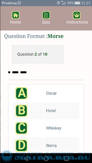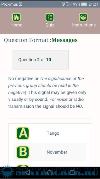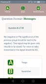 Here you can test your knowledge with a series of 10 questions. You can choose questions on flags, messages or Morse codes. Start with flags and then go on to messages and later Morse code. You can always come back to this section to test your actual knowledge.