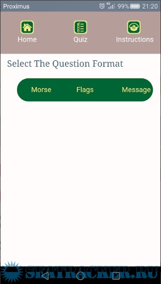 The ICS flag trainer app has 3 menus.
