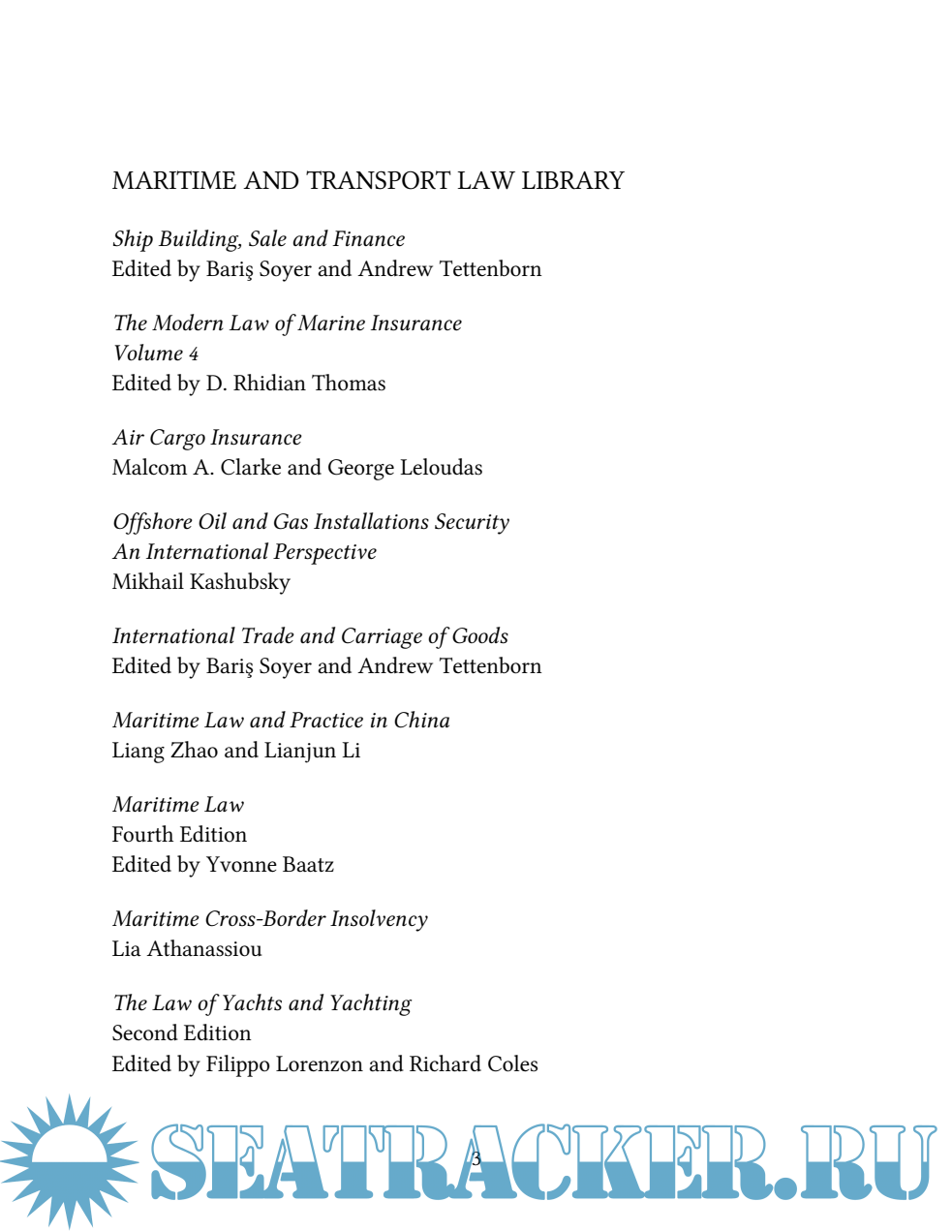 Year: 2020 Language: english Author: Časlav Pejović Genre: Handbook Publisher: Informa Law from Routledge Edition: 1 ISBN: 9780429197130 Format: PDF Quality: eBook Pages count: 567 Description: Transport documents used in carriage by sea, and particularly bills of lading, have been the subject of numerous books. Then, why another book on this topic? This book brings a fresh, comparative approach to transport documents used in the carriage of goods by sea. In addition to English law, which dominates this area, the book covers a number of jurisdictions, such as American, French, Italian, German and several Asian jurisdictions, also comparing civil law and common law where appropriate. There is no similar book on the market. The book provides a historical perspective of development of transport documents from the first traces that can be found in Roman law to blockchain bills of lading and other modern technologies. This provides an insight into how maritime law has been developing over centuries, while maintaining its fundamental principles and values. Additional info: pdf+mobi+azw3+epub