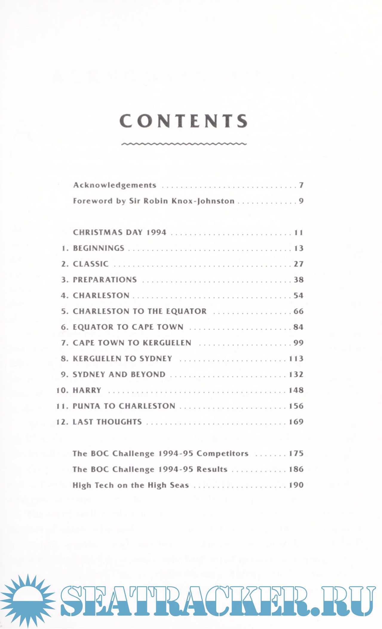 In the earlier chajiters of the book, the author entertainingly describes his development from novice sailor to world-class yachtsman, and outlines his preparations for The BOC Challenge which included winning his Class in the 3500-mile transatlantic curtain-raiser to the big event. Rarely, it seems, was any of it plain sailing.