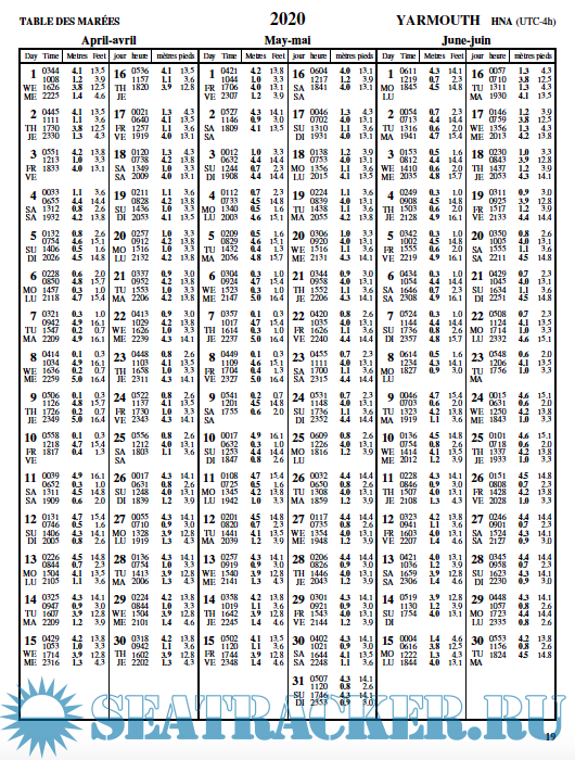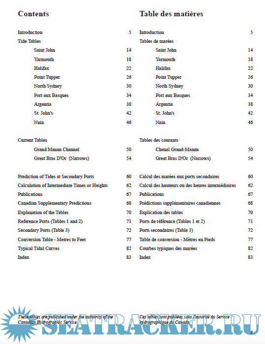 Tide tables include predicted times and heights of the high and low waters associated with the vertical movement of the tide. They're available in table, graphic and text formats for over 700 stations in Canada.