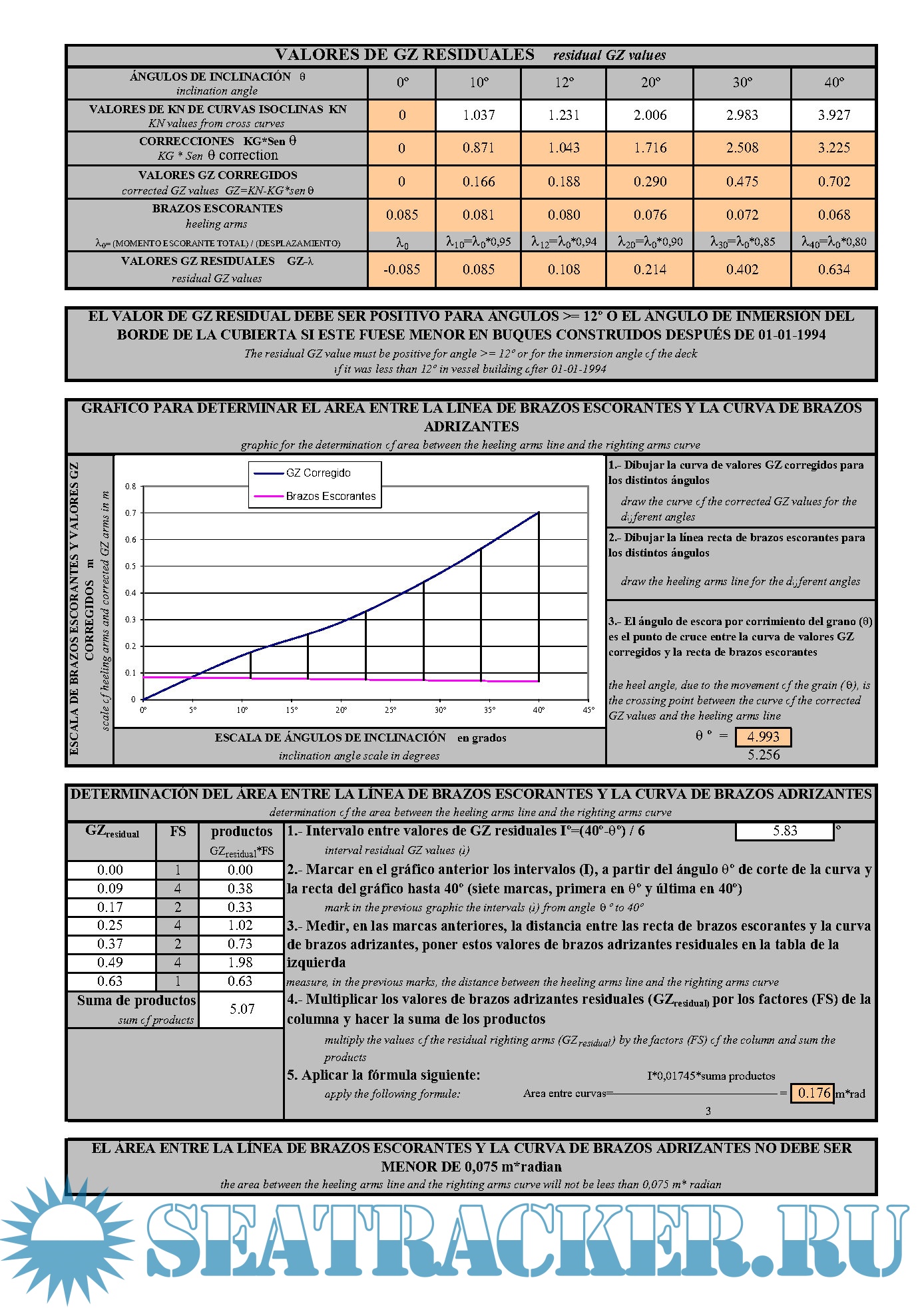 This spreadsheet has been modified in order to calculate the residual dynamic stability and draw the simpson ordinates in the stability curve automatically