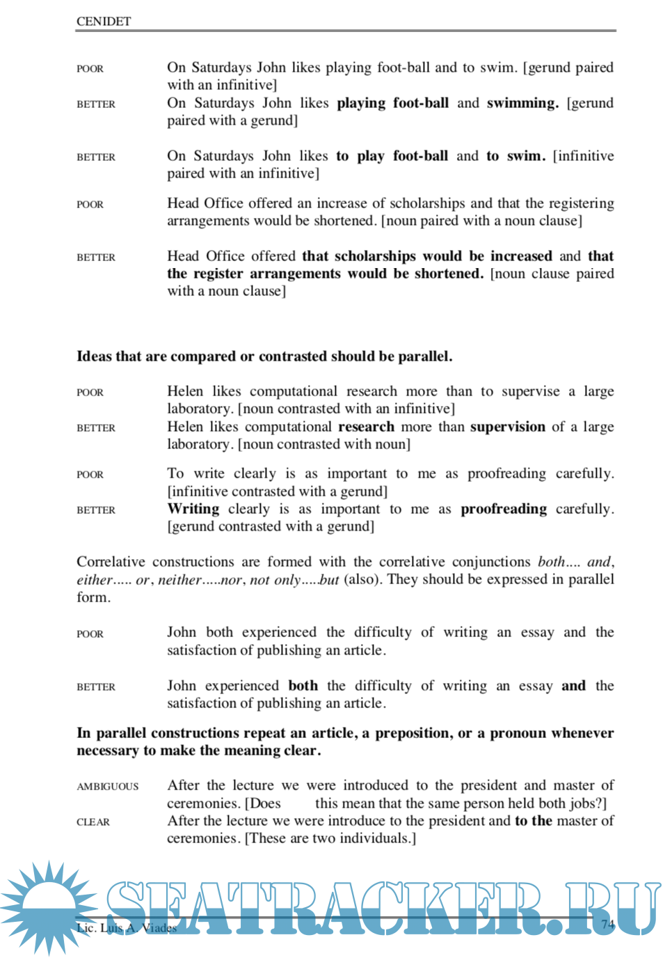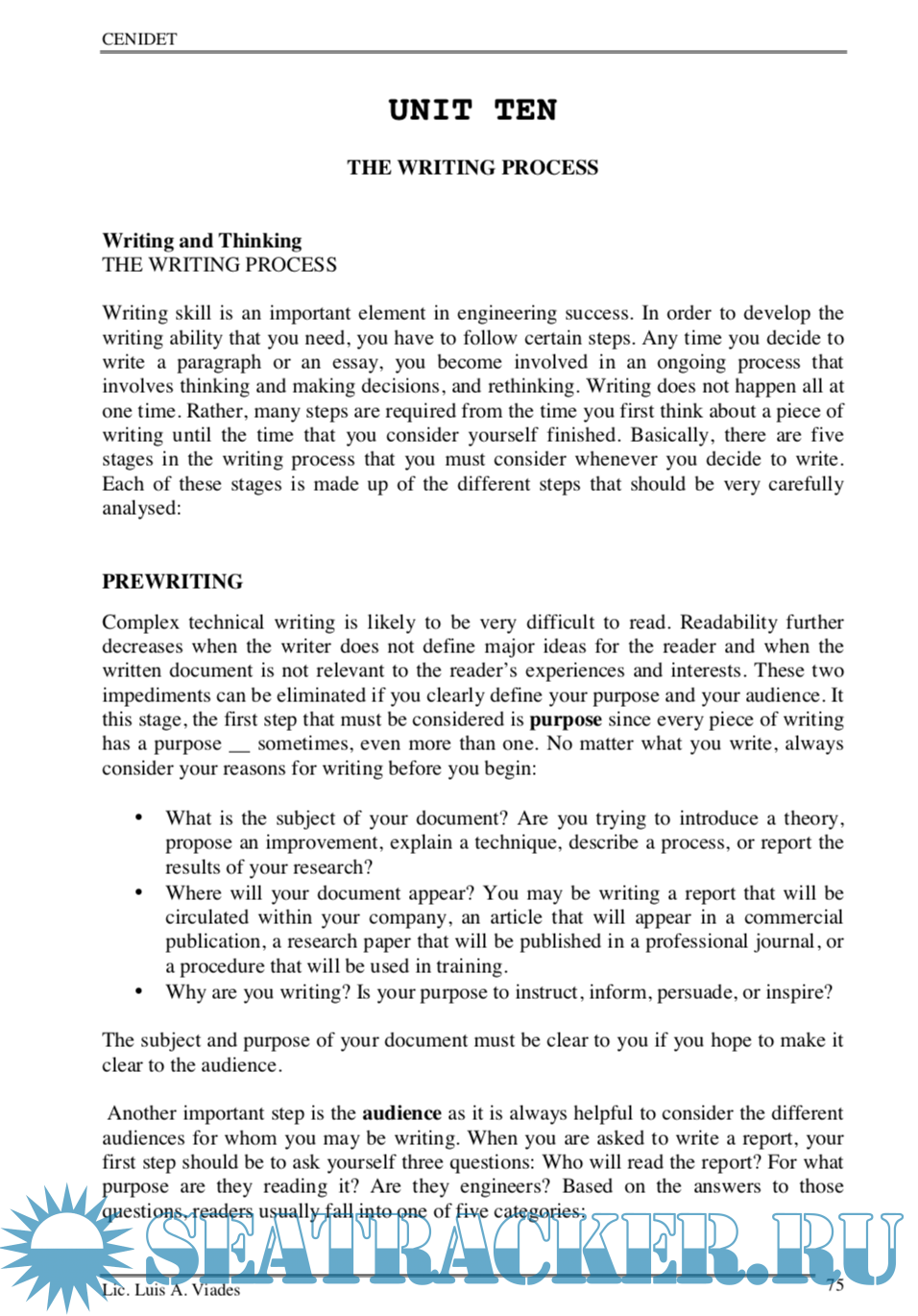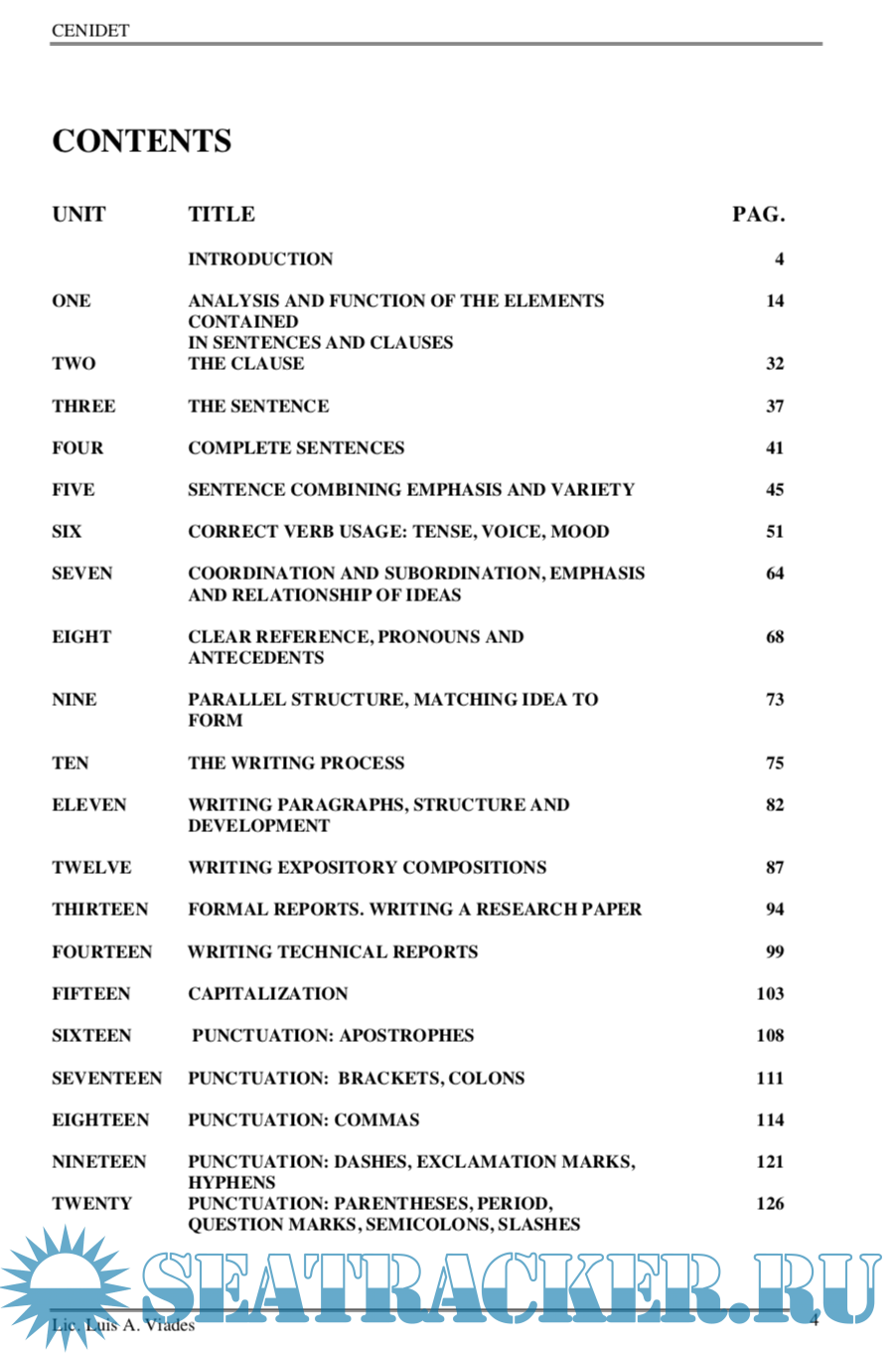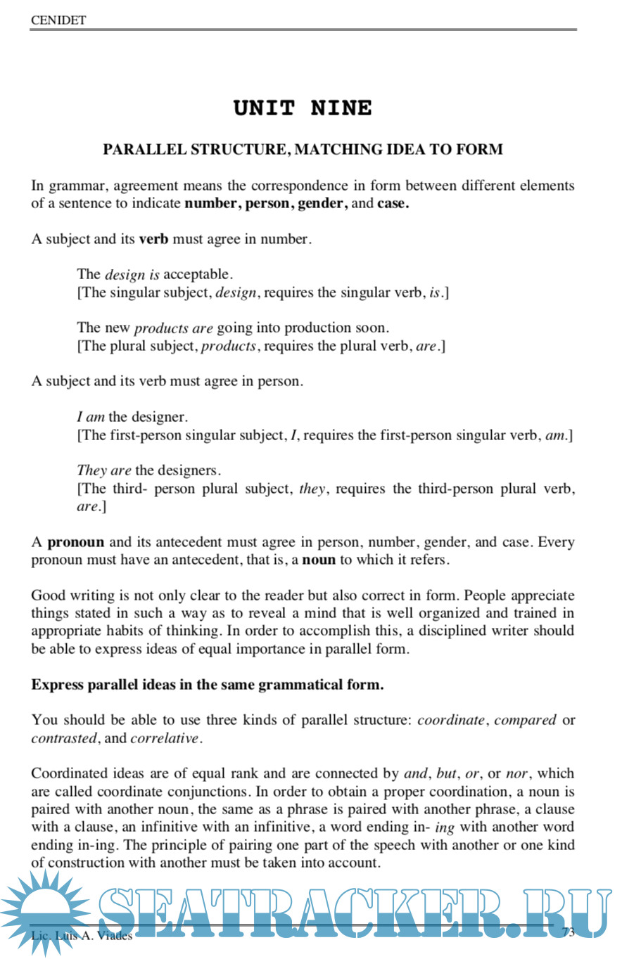 Year: 2002 Language: english Author: Luis Alberto Viades Valencia Genre: Textbook Publisher: CENIDET Edition: 1 Format: PDF Quality: eBook Pages count: 132 Description: The book Teaching Technical English Writing (TTEW) is a long time project that has finally become a reality and will eventually be published in the summer of 2002 sponsored by the DGIT and by CENIDET where I have been working as Head of the English Department since 1988. In most respects TTEW is a response to the following situation. The majority of students who enter CENIDET for post-graduate studies, come from technological institutes modelled on the lack of English instruction during the five years of their first degree. Their previous years of preparatory English instruction were based on structural/behaviorist methodological models. What learners are tought at this level is not a communicative knowledge of English language use, but knowledge of how the syntactic and lexical rules of English operate. The language system is taught, suitably contextualised by means of techniques based on habit formation theory of learning and a structuralist description of English.What students succeed in learning in this way is what is necessary in order to pass examinations. At a post-graduate level they are generally highly conscious of the use they intend to put the foreign language. That use is associated with an occupational, vocational, academic or professional requirement.