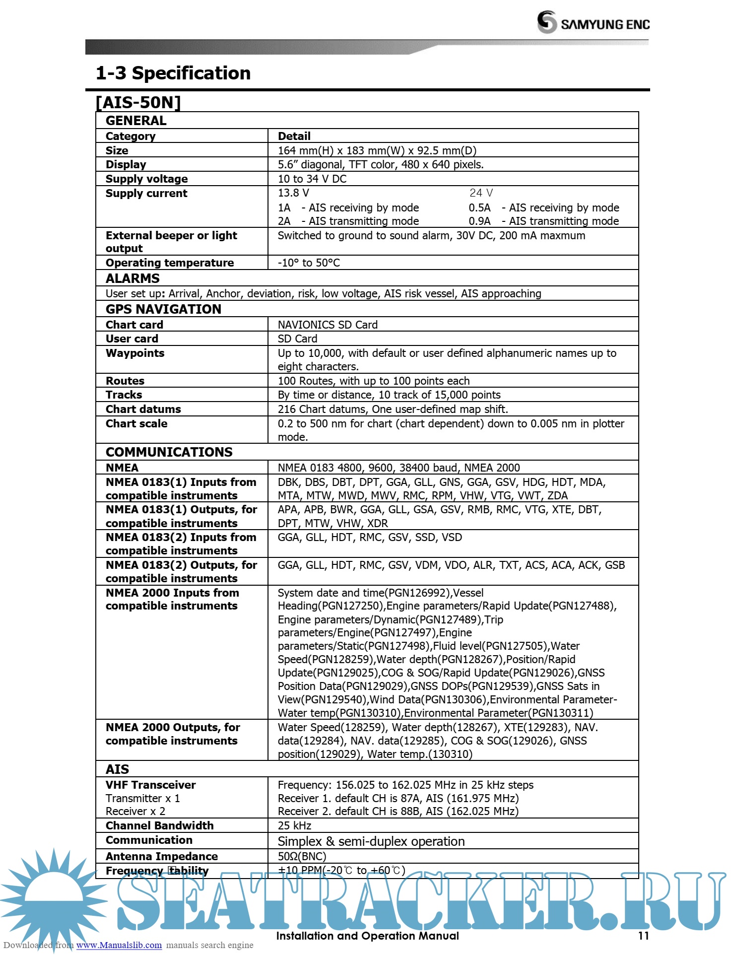 Samyung SI-30 AIS Manual Instructions - Samyung ENC [2010, PDF]