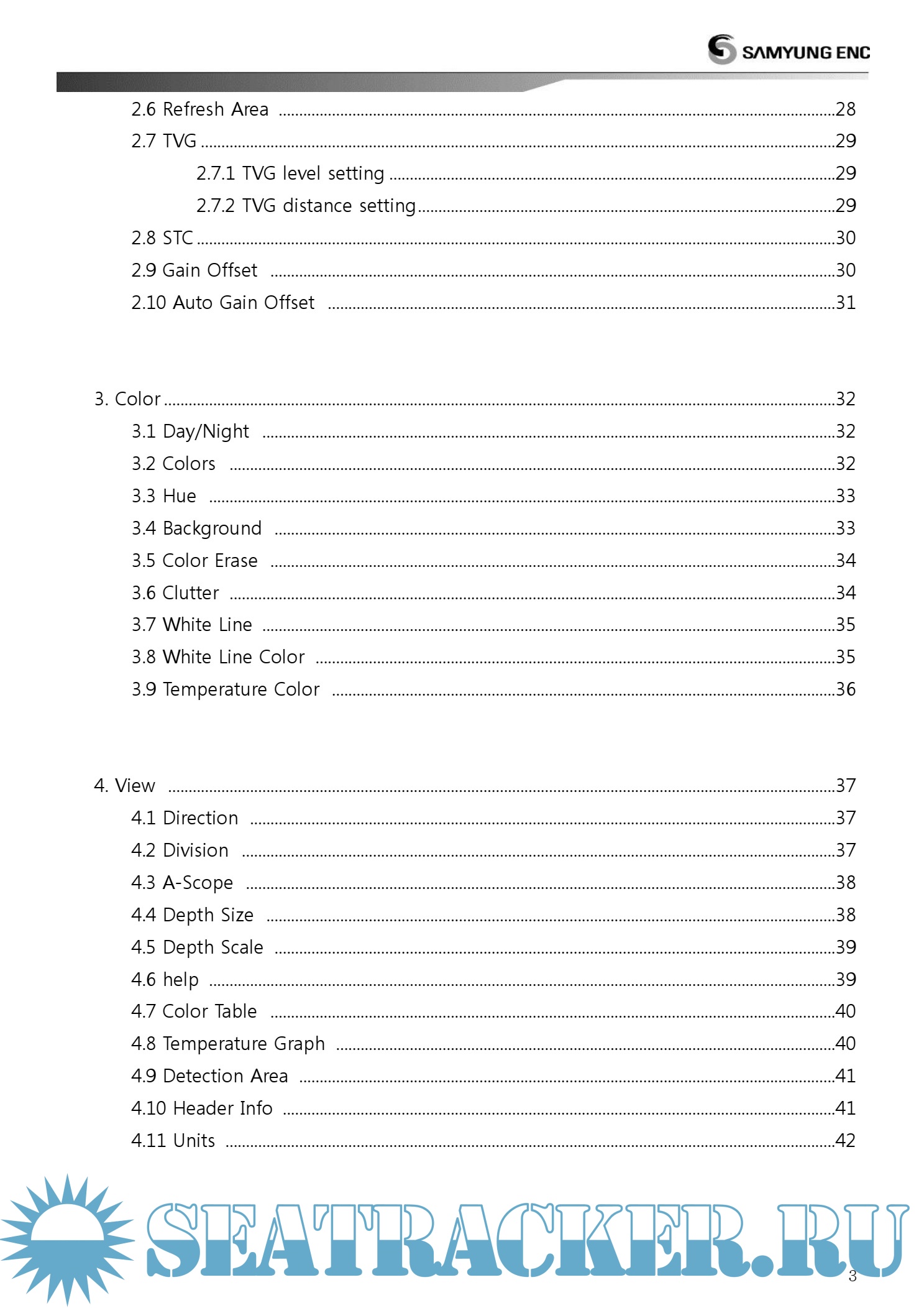 Year: 2014 Language: english Author: Samyung ENC Genre: Manual Publisher: Samyung ENC Format: PDF Quality: eBook Pages count: 59 Description: • Easy and quick gain setting control - When gain changes are applied, the previous echoes are applied at the same as the new echoes - Allows to display weakly recorded fish group • Allows to display weakly recorded fish group - 30% increase of transmitting speed allows more detailed fish school to be displayed • Fine tuning of transmitting frequency - Fine tuning over all frequencies including low and high transmitting frequencies • Progressed image processing technology - Express image with various filtering process : Interference removal, noise removal, clutter, color removal and digital filter area setting • Selectable display color - Use may select preferable color display • Display area detected on A-SCOPE - Display area of seabed transmitted by the beam angle from transducer on A-scope to increase ease of work - Beam angle may vary depending on the frequency of the transducer and the installation method. The data displayed on the equipment should be used for reference only • Multi-frequency and the output - The selection of transducers with various frequencies and output is available - 28/38/50/68/82/88/107/150/200 kHz - Dual frequencies - Transmission output can be selected from 1/1.2/1.5/2.5/3KW - Connectable with past transducers • Display white line - White line applied to easily discern seabed from the fish school or reef * Display the strong signal from seabed in the white line in order to easily distinguish between fish group and seabed • Digital filter technology - Digital filter technology applied to display the weakest echoes from small fish and reduce noise at the same time
