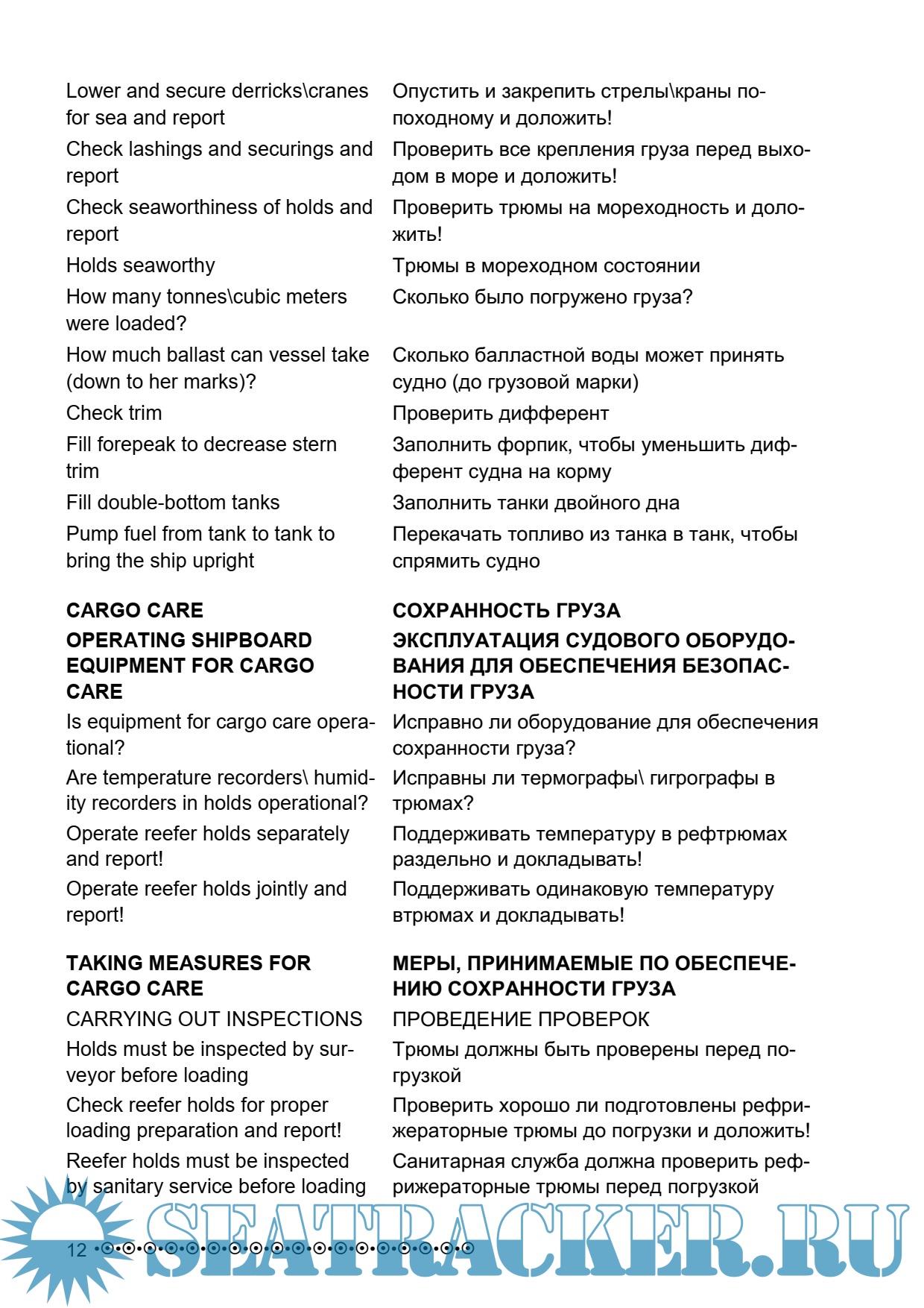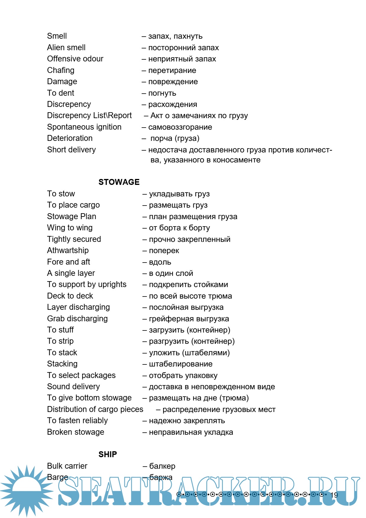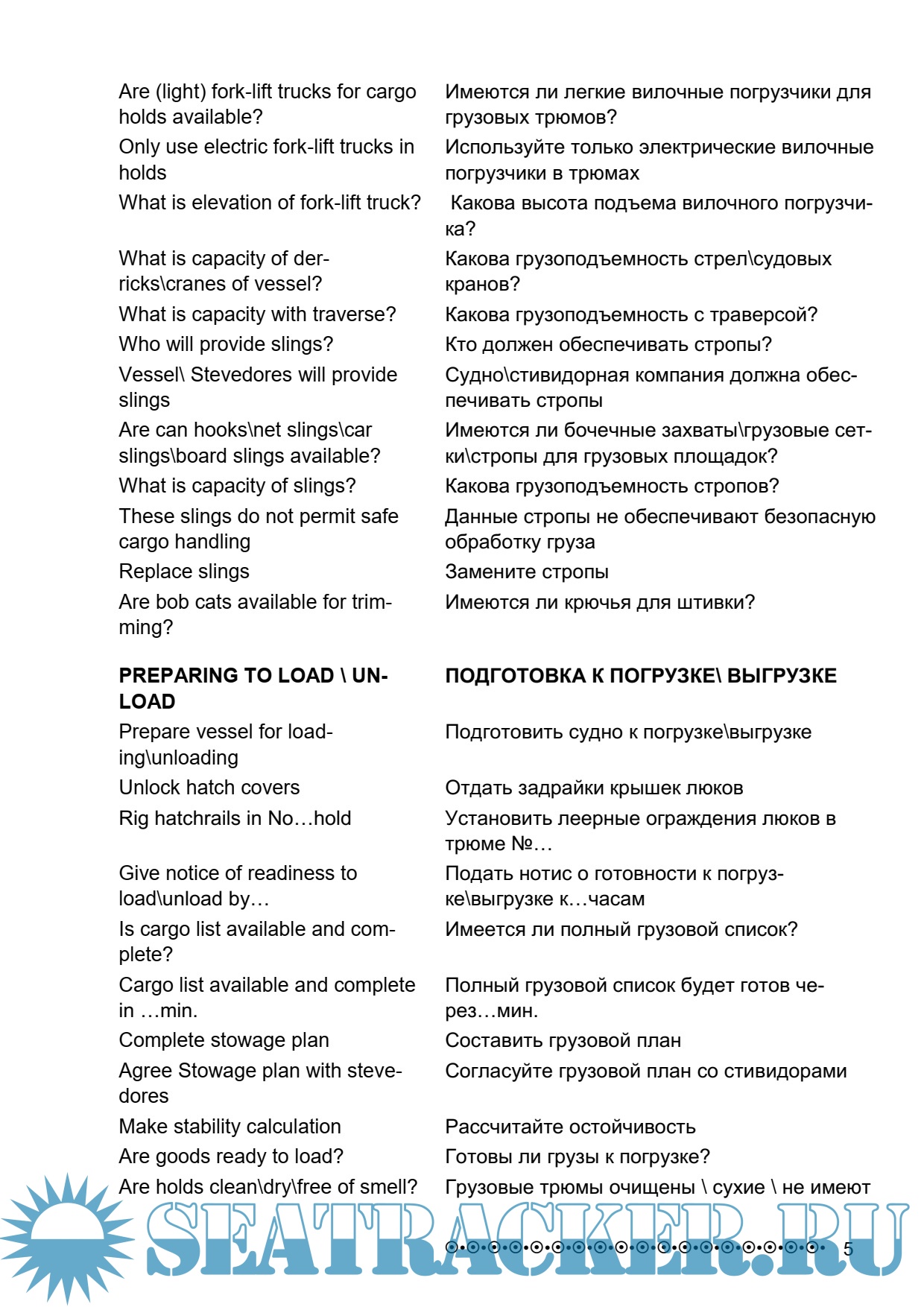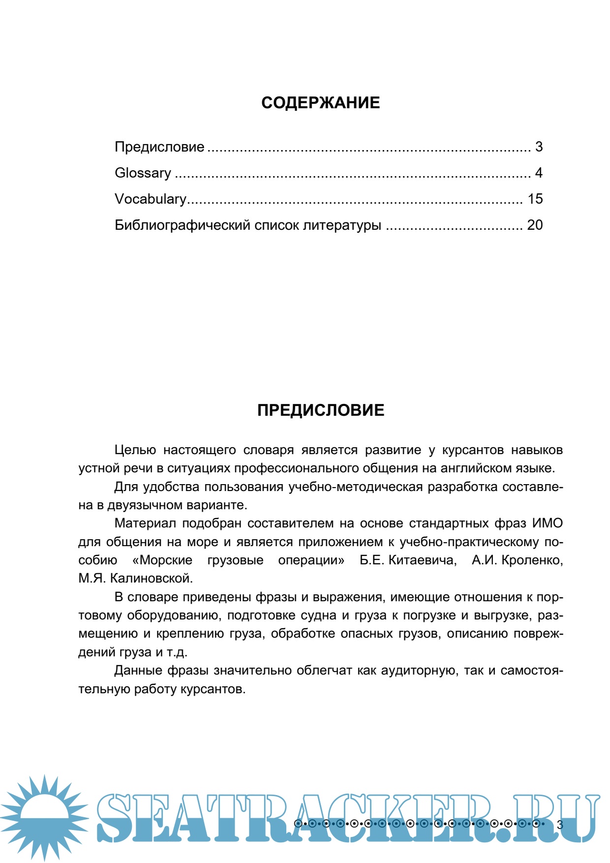 Описание: Словарь составлен на основе стандартных фраз для целей общения на английском языке в сфере морских грузовых операций.