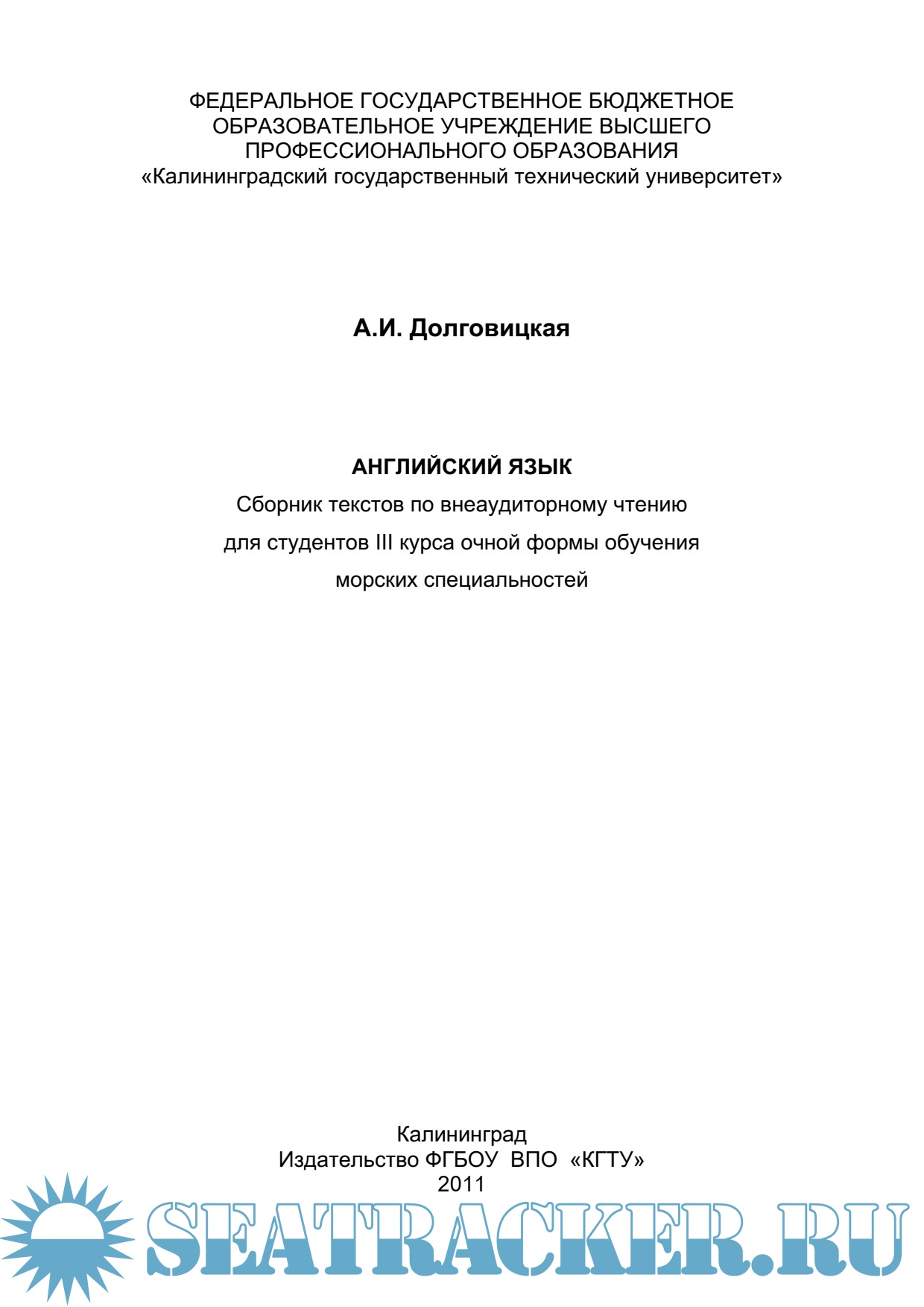 Год выпуска: 2011 Язык: Русский, Английский Автор: Долговицкая А.И. Жанр: Методическое пособие Издательство: КГТУ Формат: PDF Качество: Изначально компьютерное (eBook) Количество страниц: 71 Описание: Данное методическое пособие представляет собой сборник текстов по внеаудиторному чтению, предназначенный для студентов III курса очной формы обучения морских специальностей.