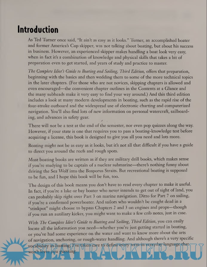 Year: 2005 Language: english Author: Frank Sargeant Genre: Guide Publisher: Alpha Edition: Third Ed. ISBN: 1-59257-323-1 Format: PDF Quality: Scanned pages Pages count: 418 Description: Here is an excellent overview of both power boating and sailing that focuses on the techniques shared by both. Solid material any boater will need to know on buying a boat and the cost of ownership, marine power and motors, technology and weather, safety, navigation, and boat handling—as well as expanded coverage on sailing and a brand new chapter on personal watercraft—this is the only boating book to own.