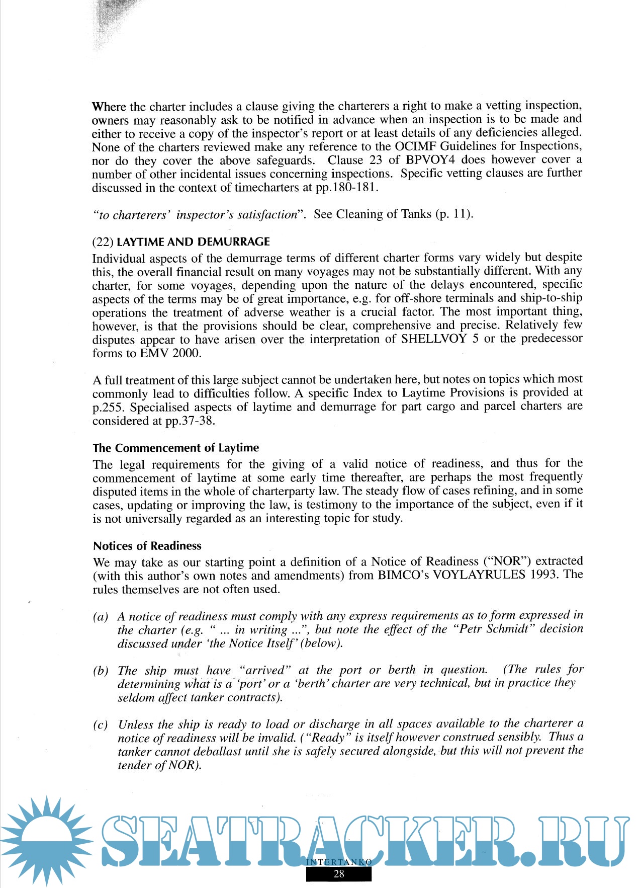 Year: 2001 Language: english Author: Harvey Williams Genre: Guide Publisher: Intertanko Edition: 3rd Format: PDF Quality: Scanned pages Pages count: 291 Description: INTERTANKO’s publication Tanker Voyage Charters written by Harvey Williams and the late Stan Bonnick, the second edition of which appeared in 1992, has become a well-known source of reference to those engaged in the business of negotiating charters. Since then there have been a number of new charterparty forms published by major oil companies including most recently a new time charterparty issued by BP Amoco. The provisions of charterparties of course vary considerably from form to form and it is important that the rights and liabilities of the parties are fully comprehended.